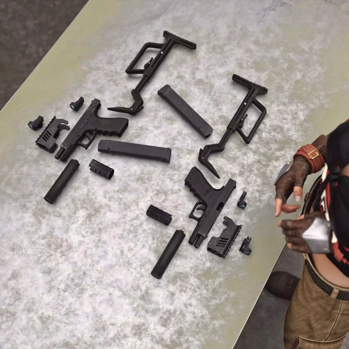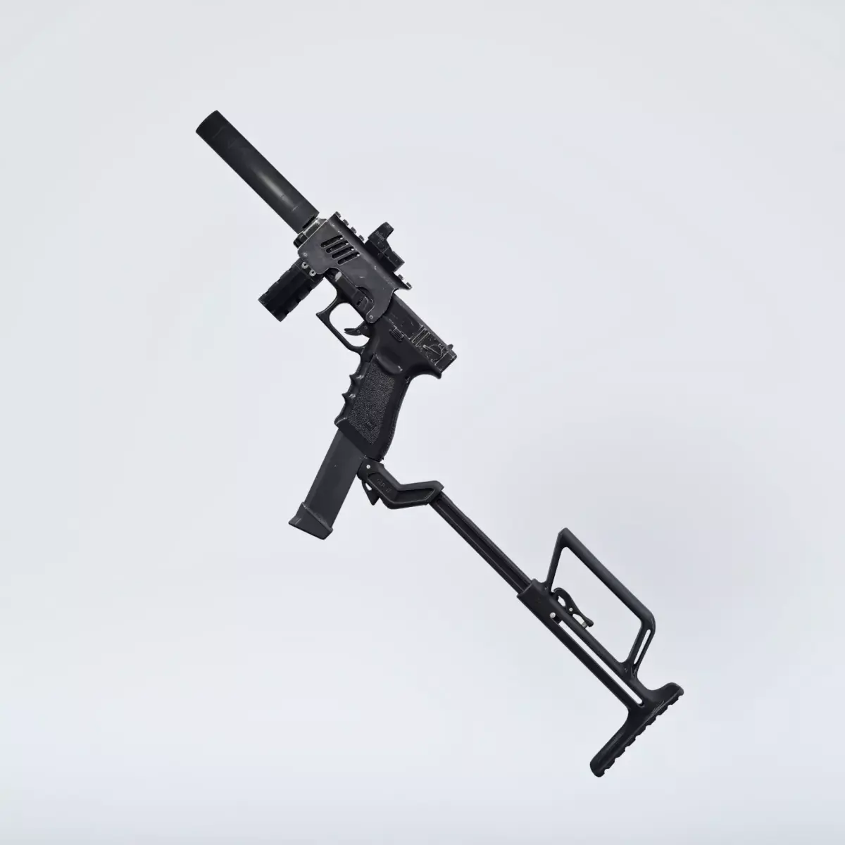 Slide riggedTrigger riggedMag riggedSilencer riggedFront grip riggedBracket riggedRed dot on bracket riggedStock rigged