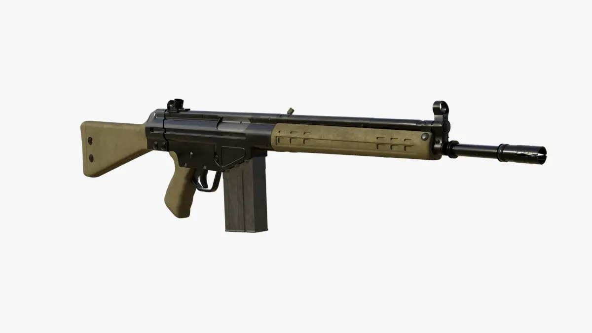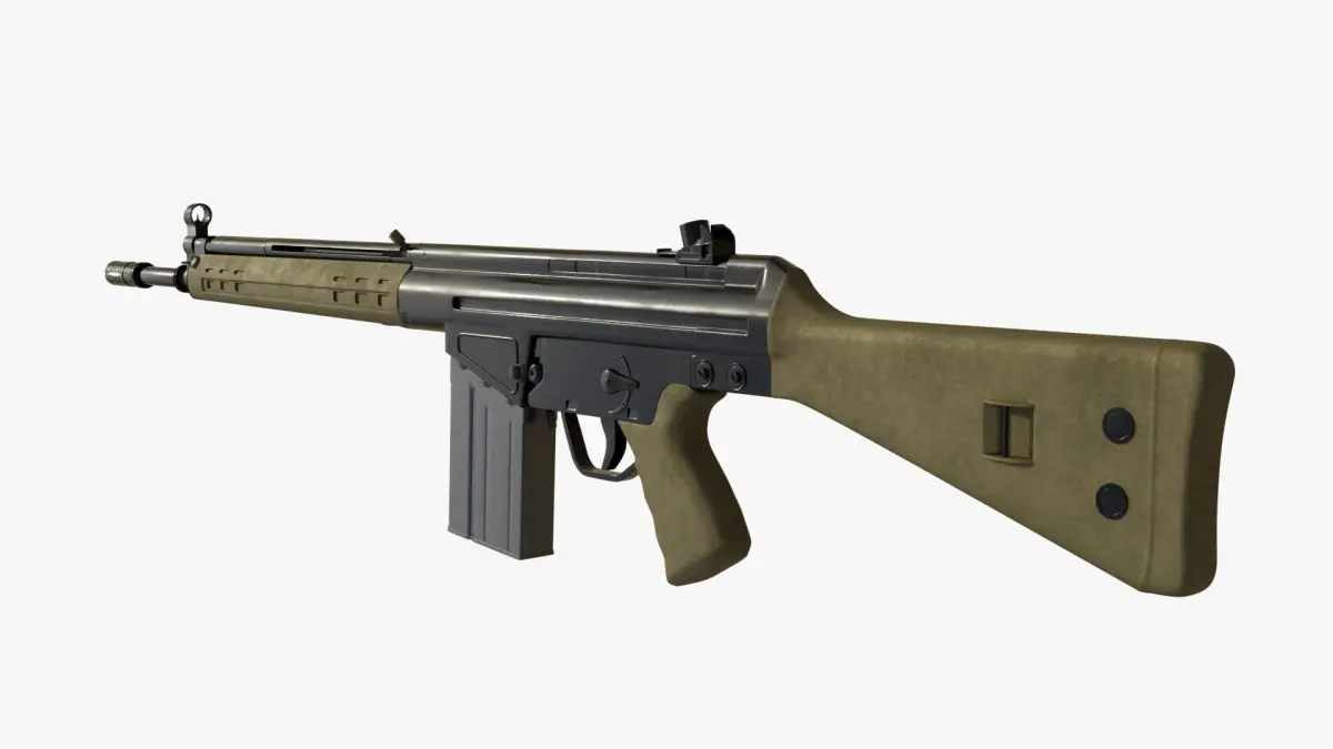The G3 is a battle rifle that was designed by the German company H&K in the 1950s. It has gained widespread use and recognition for its reliability, durability, and effectiveness in combat. The G3 is chambered in the 7.62x51mm NATO cartridge, which provides significant stopping power and effective range. It operates on a roller-delayed blowback system, where rollers in the bolt assembly delay the opening of the bolt until the pressure in the barrel drops to a safe level. This design ensures reliable functioning and allows for accurate and controlled firing. The G3's reputation for reliability and durability is attributed to its high-quality materials and construction. Its stamped steel receiver, reinforced components, and simple design contribute to its ability to function in harsh environments and adverse conditions. The G3 has established itself as a reliable and widely used rifle in military and law enforcement circles globally.