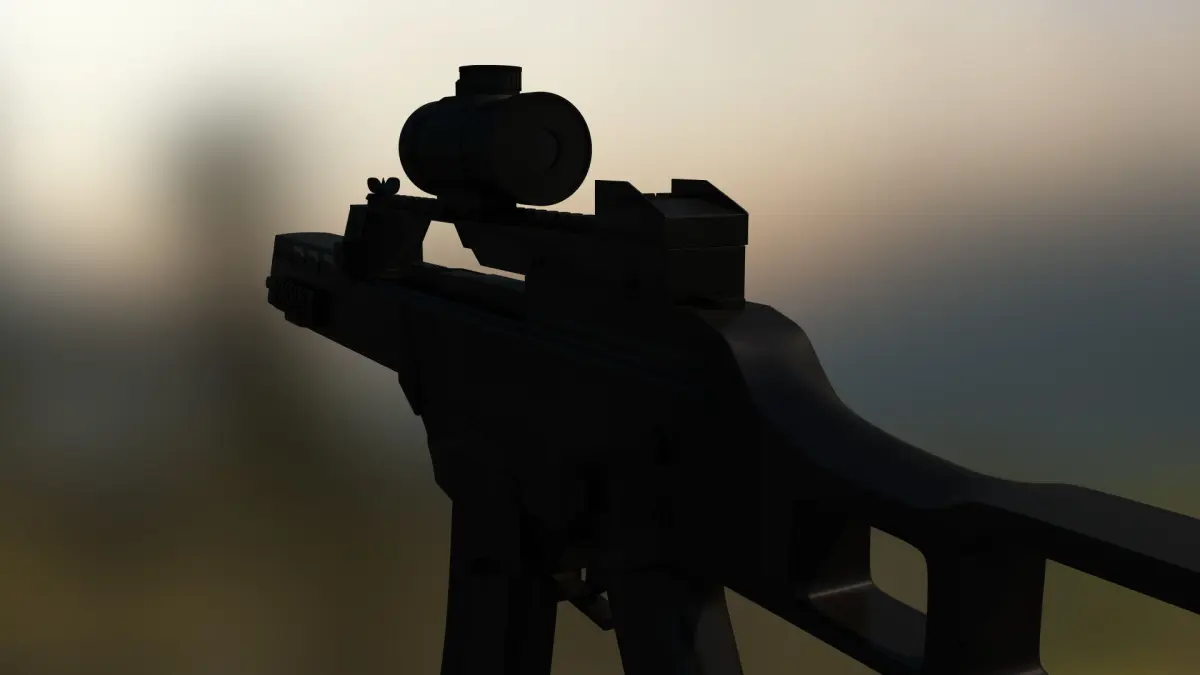 This is a model of a "Heckler und Koch" G36 Rifle. It's a detailed model with all the triggers you need. The model includes a scope which you can use. It's only what you can see on the pictures, the interior of a G36 is not included.