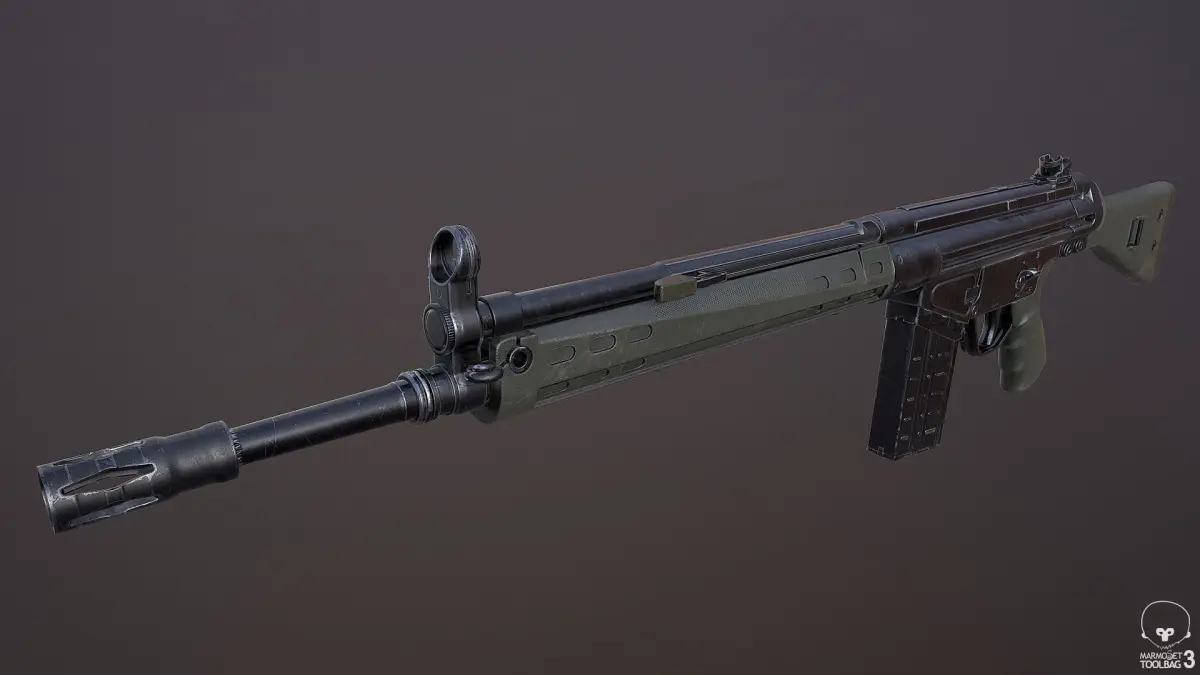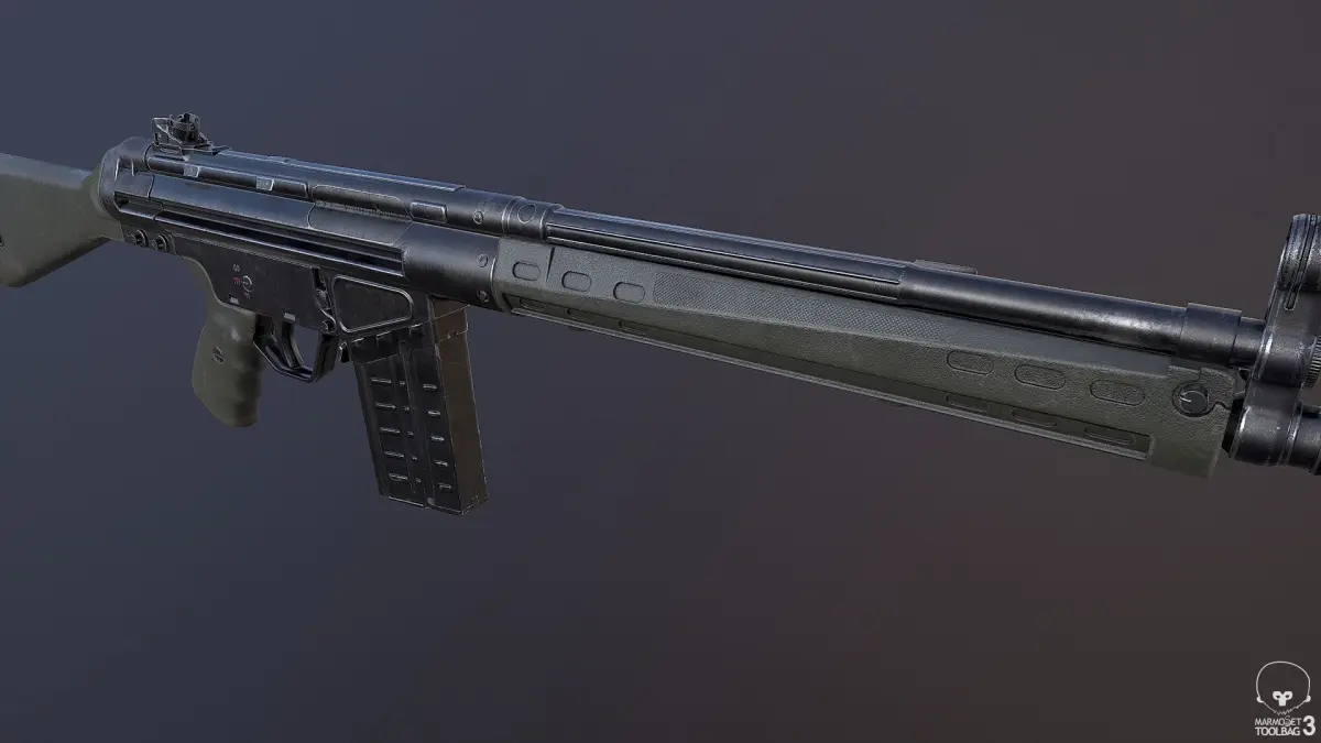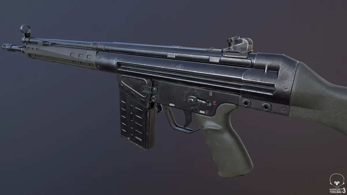 - The weapon is separated into objects to make animation easier. Movable objects include the bolt carrier, magazine, magazine release, rear sight drum, fire selector and trigger.