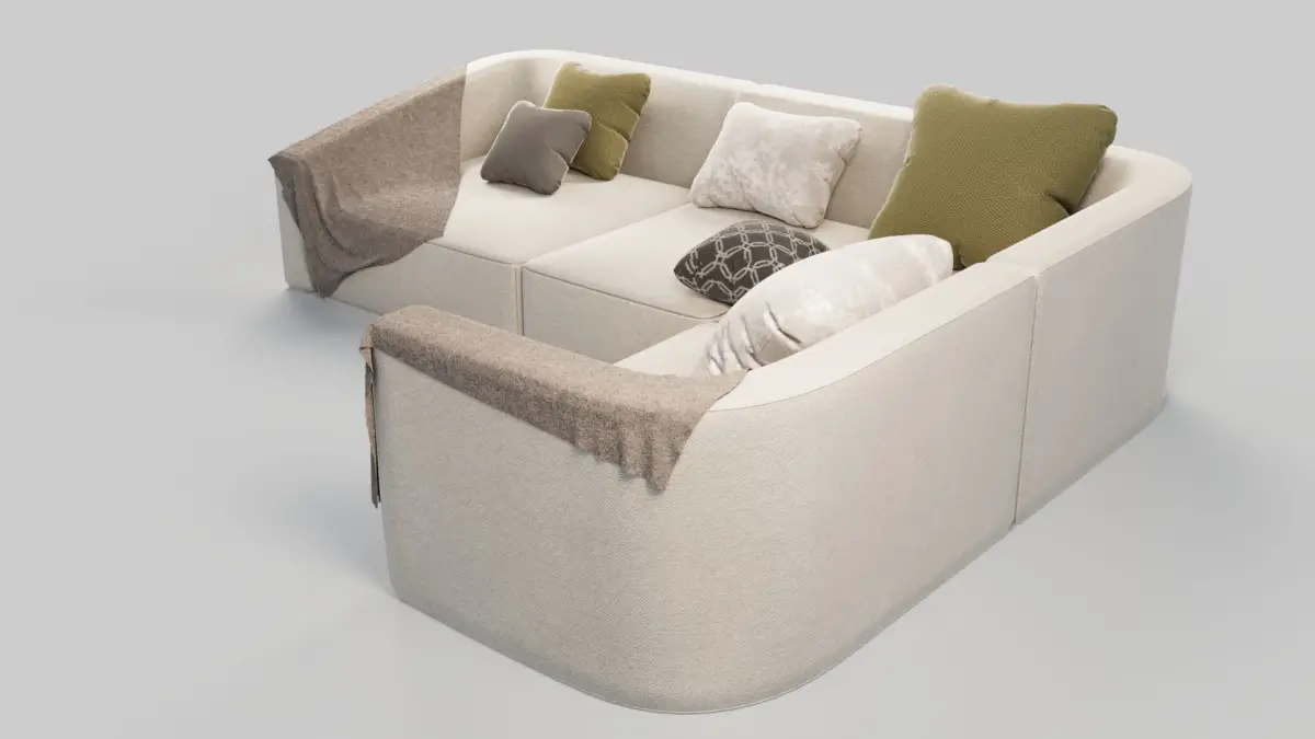 High-quality 3D model of a modern modular sofa with decorative pillows and a throw blanket. Created in 3ds Max 2021 and rendered with Corona Renderer. All objects have proper UVW mapping and unwrapped UVs. The model is ideal for use in interior visualizations, architectural renders, and product presentations. Includes multiple pillows in various fabrics and colors, along with a realistically draped throw for added detail and realism. All elements are properly named, grouped, and optimized for performance. Archive includes: .MAX file (3ds Max 2024), all necessary textures (sofa fabric, pillows, blanket), and high-resolution preview render. Render engine: Corona Renderer. Real-world scale.