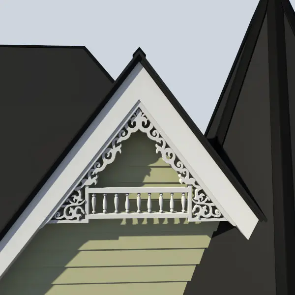 This Victorian styled gable decoration is a perfect finishing touch to a 3d modeled house.