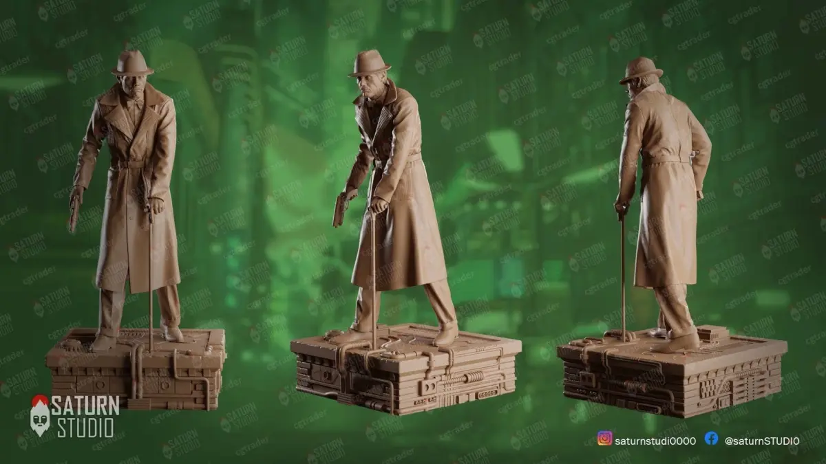 Gaff was an important character in Blade Runner trama, being a police officer he always appeared in the moments when Deckard was going to be obligated to do things he don't like, but in the plot climax, he developed an important role, showed a great consideration as a human being, this sculpture has been inspired in the last scene where he came up after Roy died, saying the quote: “It’s too bad she won’t live. But then again, who does?”