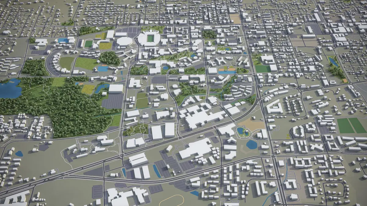 - Full city extents up to 100 x 100 km — or crop to an area of interest for better format compability and scene performance