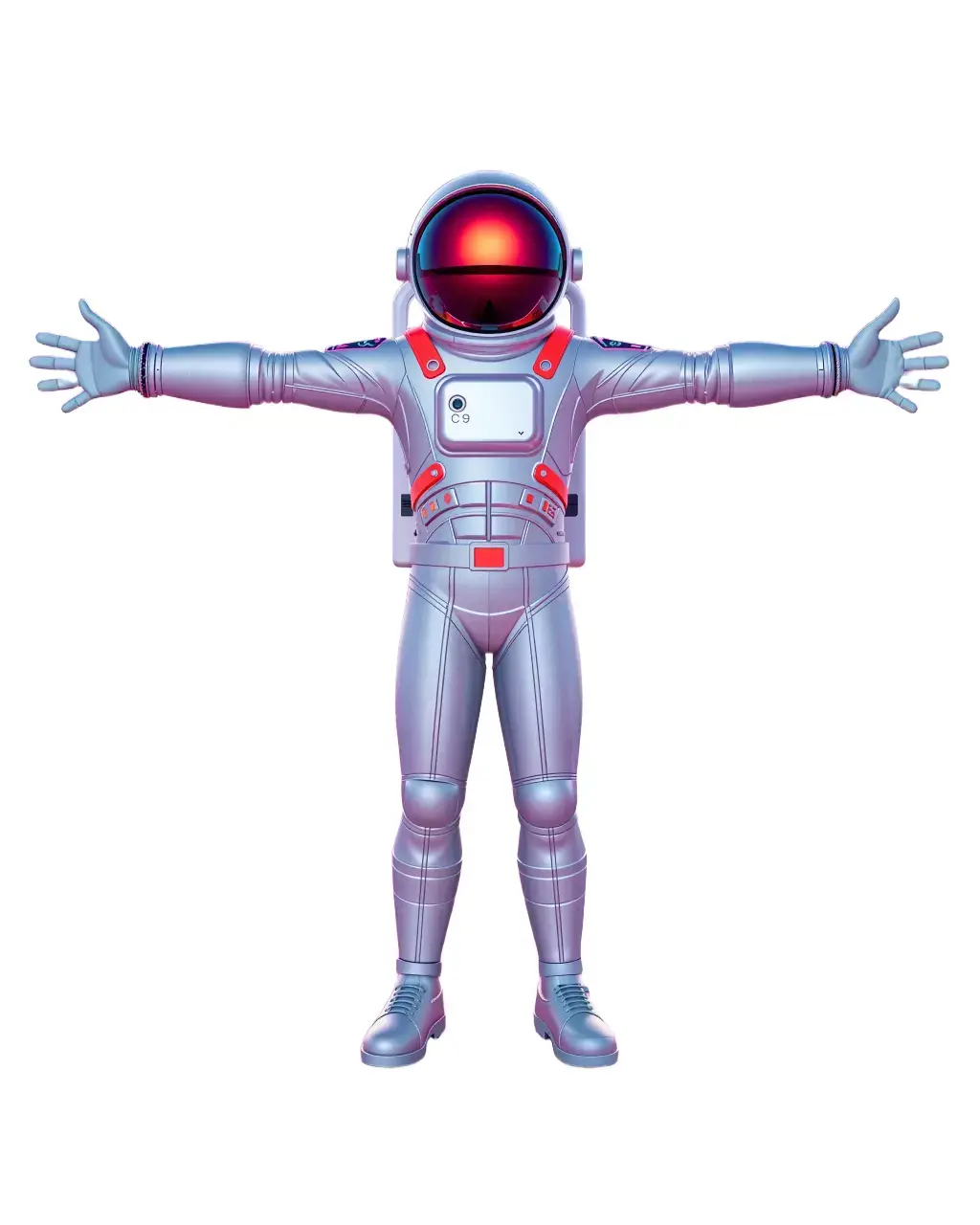 The Galactic Astronaut Suit model pack features a futuristic space suit with vibrant metallic accents and intricate detailing. Each model has 3 levels of detail: low-poly (1000 triangles for mobile), middle-poly (10,000 triangles for environment), and high-poly (100,000 triangles), which allows for the use of this model in production rendering (such as 3ds Max, Maya, Cinema 4D, Blender, Vray/Corona/Cycles, and all other), game engines (Unity and Unreal compatible), and interactive presentations, providing a choice of detail based on the LOD System principle. Perfect for sci-fi films, games, and educational simulations. The model's textures are PBR, Diffuse, NormalMap, and reflection/roughness/metallic, which are suitable for any modern rendering engine. All models accurately unwrapped and have no overlapping UVs. All textures are 4096*4096 in size. Please like and leave a comment if you enjoyed this model.
