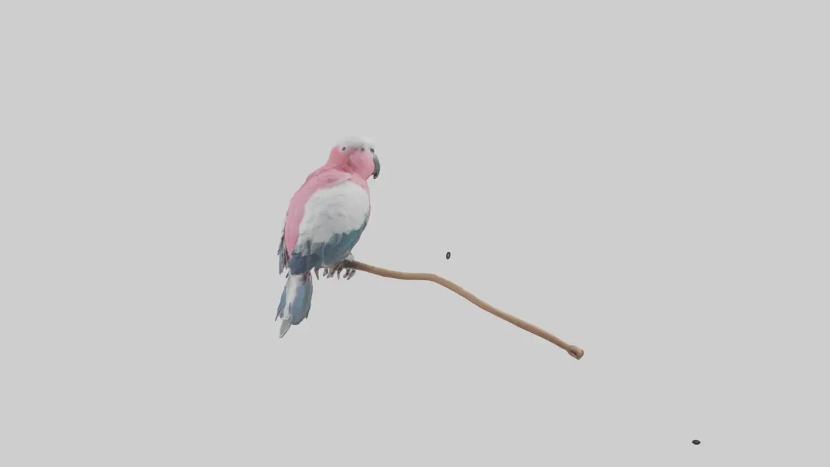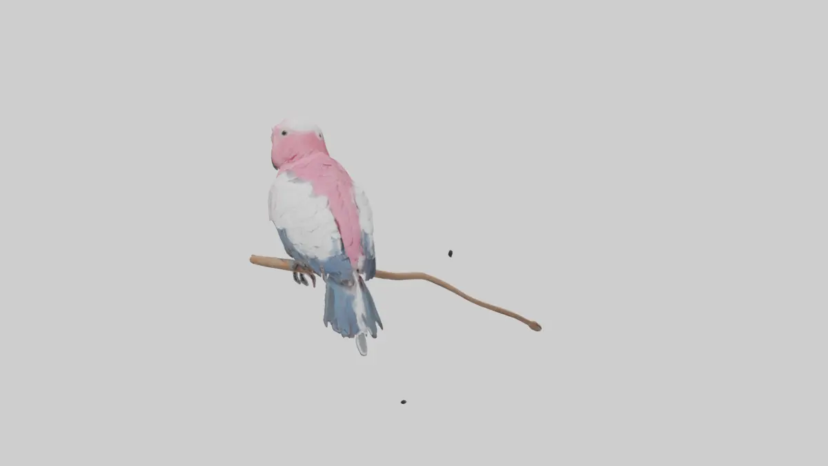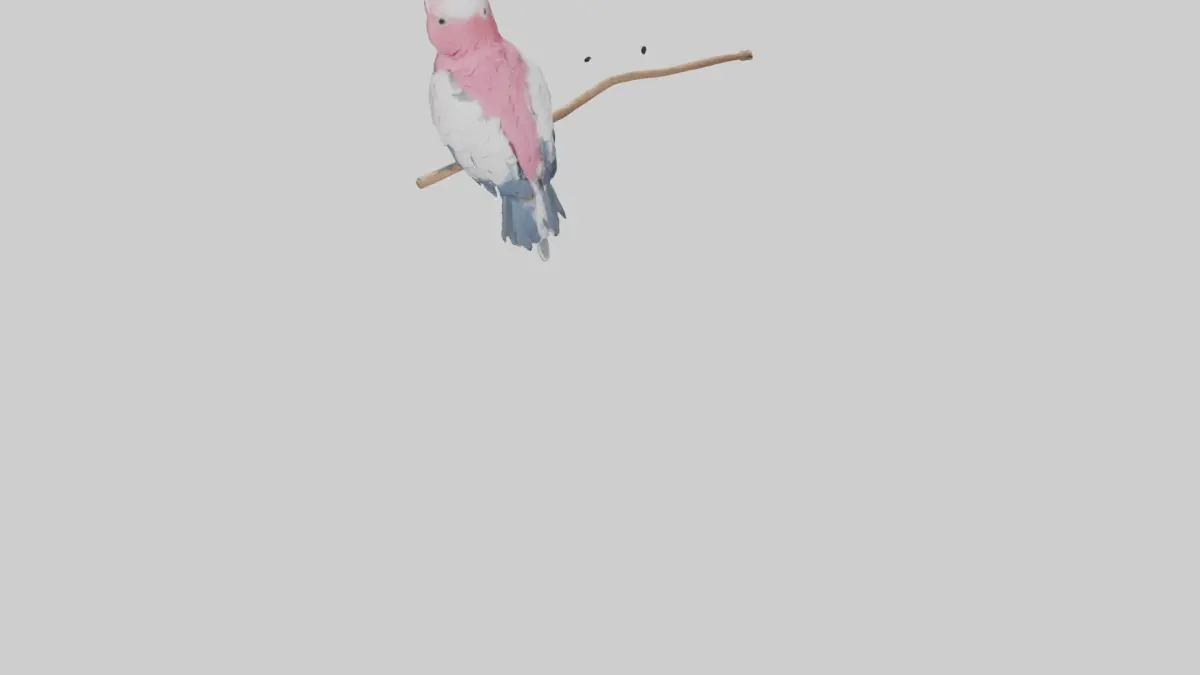 Keywords: Galah parrot 3D, perched parrot, bird model, animal model, animation model, 3D print model, FBX, OBJ, GLB, USDZ, STL, BLEND, 3D model.