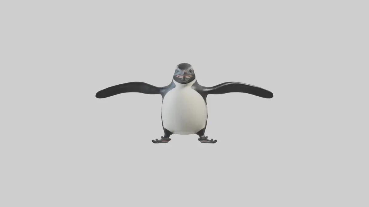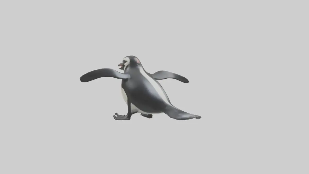 Krótki model 3D ślizgającego się pingwina galapagoskiego. Przedstawia pingwina galapagoskiego w pozie ślizgania się, prawdopodobnie na brzuchu na skale lub lodzie. Nadaje się do wizualizacji dzikiej przyrody i treści edukacyjnych. Dostępny w formatach FBX, OBJ, STL, GLB, USDZ i BLEND.