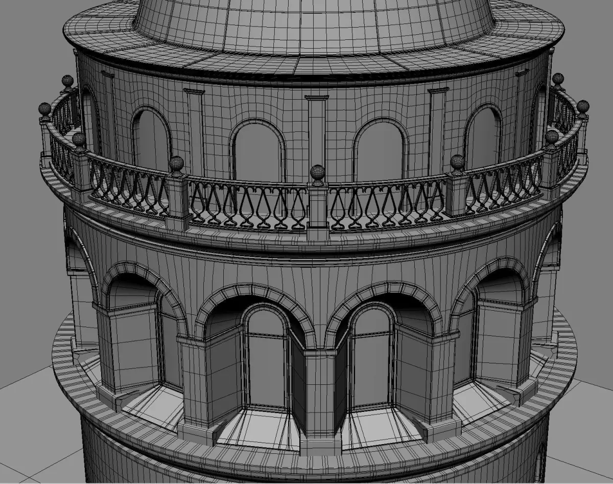 galata tower qiosk subdivision ready mesh model.