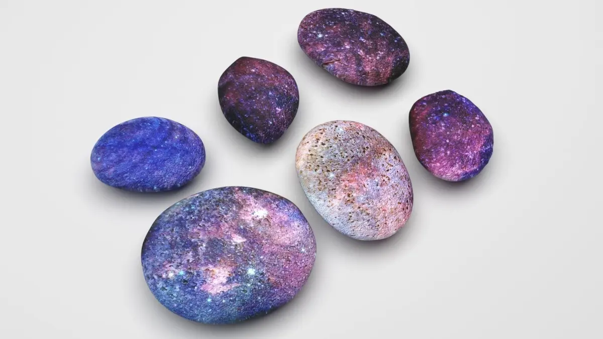 6 different pebbles models with textures, copied from real sea pebble. Separate texture set for each model.