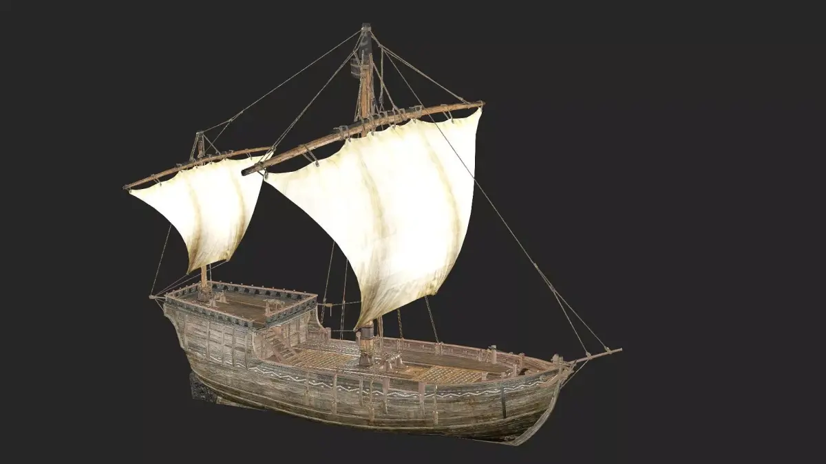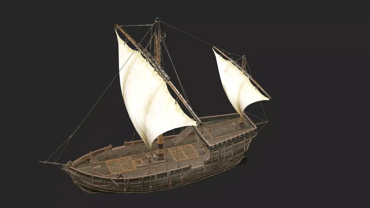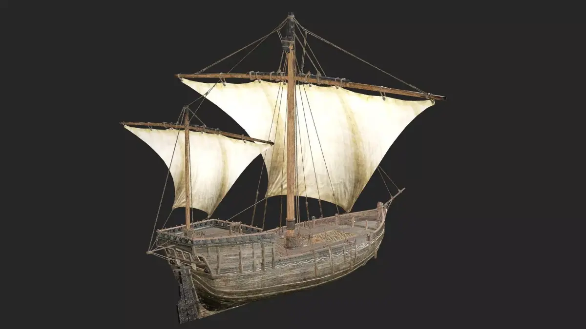 Galeon Medieval Ship Game-Ready Low-Poly 3D Model Galleon, sailing ship, reconstructed in exterior and interior detail, inspired by several galleons of the time, it is suitable for any project, includes high resolution textures, separate objects to reuse in other projects