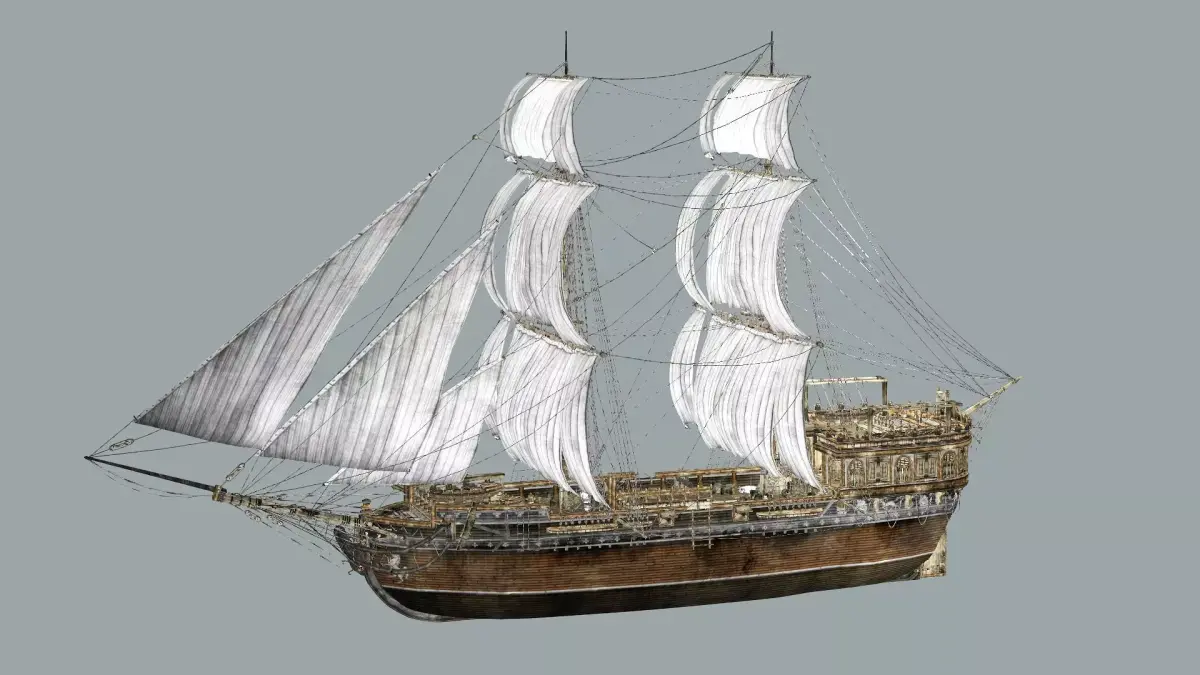 Galeon Ship A Low-Poly Game-Ready 3D Model Interiors: The ship opens to an unfurnished interior, but with an internal architecture that invites exploration. From the low, empty cargo hold to the officers' quarters at the upper rear, each space is designed to be reused and adapted according to the client's needs.