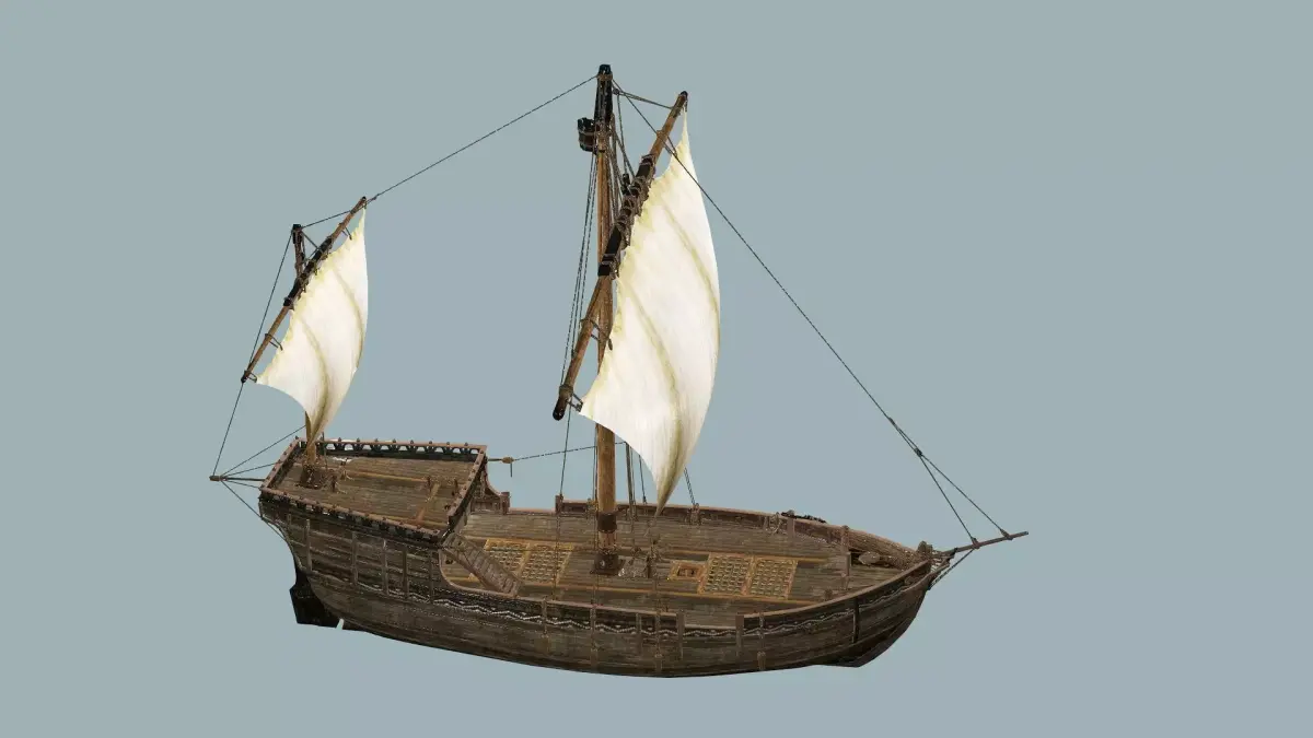 Galeon Ship X1 Game-Ready Low Poly 3D Model Galleon, sailing ship, reconstructed in exterior and interior detail, inspired by several galleons of the time, it is suitable for any project, includes high resolution textures, separate objects to reuse in other projects