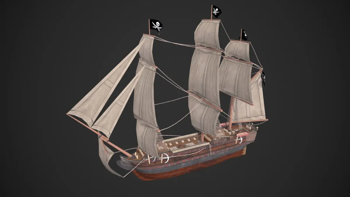 Game-ready and lowpoly Galleon Ship asset, with PBR textures included in the files. The sails and flags have been duplicated for opacity purposes. This has 10146 polys (19370 tris) and 12802 vertices. The flag can be replaced with any other flag of your choosing, just edit the texture files provided.