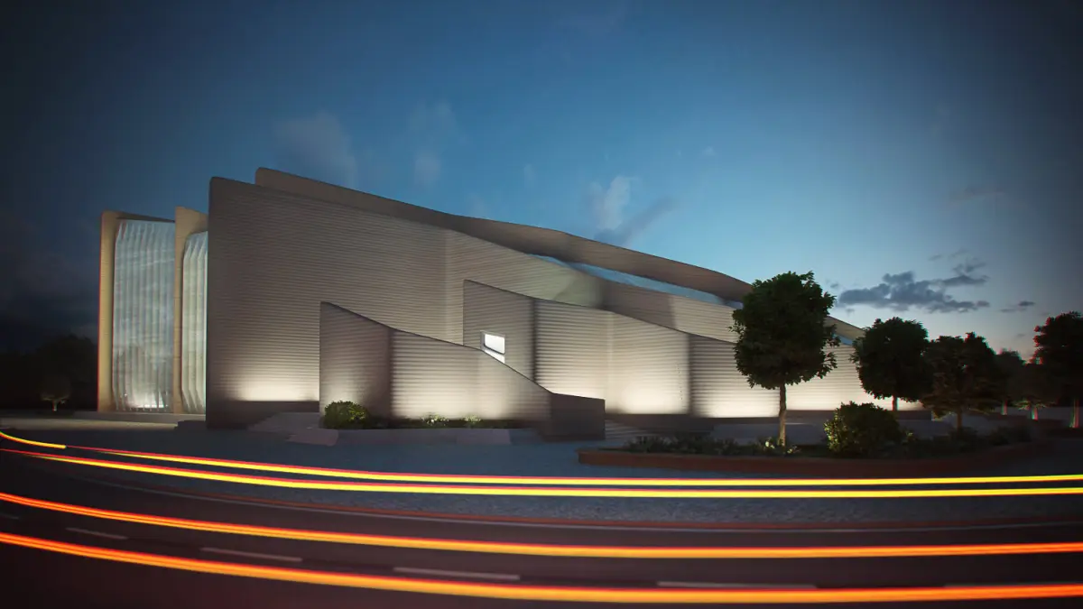 HomeCatalogGallery modern church in middle of city at night 3D model