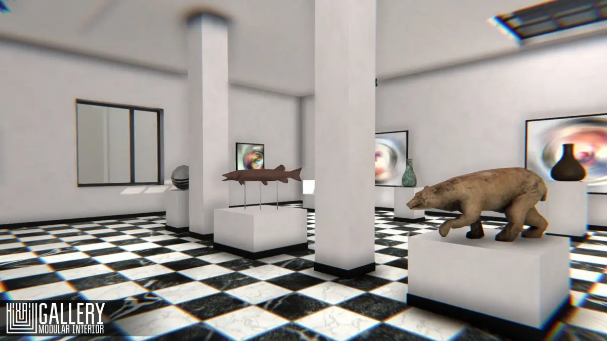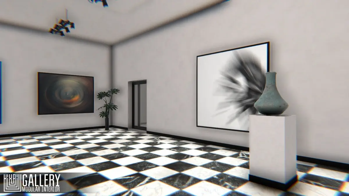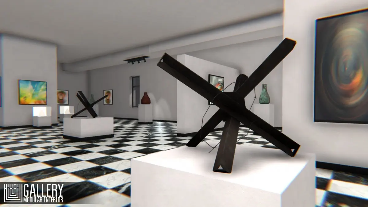 Gallery for your VR or other project. You can create interior, used modular walls from the pack. Asset have demo scene. You can change the location of all objects.