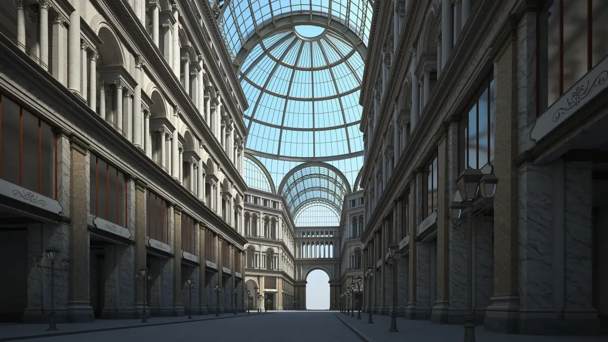 All objects have names and are organized with layers according to type of object and material. The model is composed of different objects: arches, columns, entablatures, vaults, etc. It's modulable and can be rearranged. The model uses vray materials.