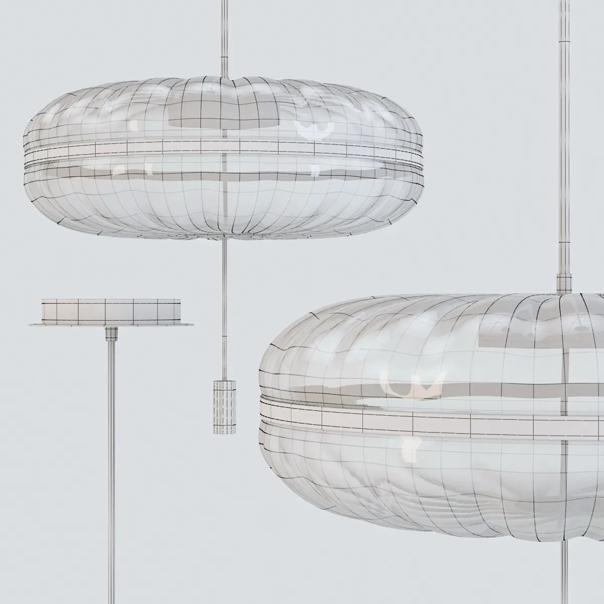 - Pendant lamp with dimmable LED (15 Watt) consists of two domed sections in blown Murano glass. Metal details - satin brass. Supplied with a 4-meter cable.