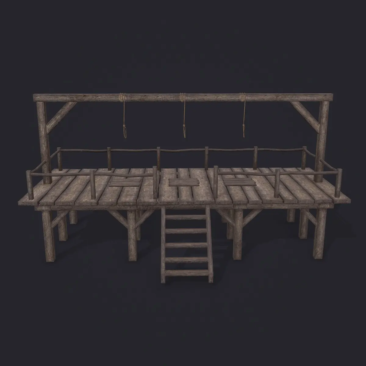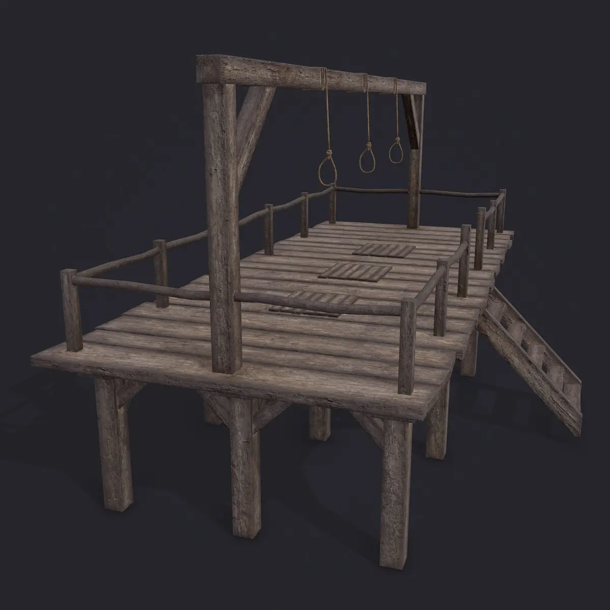 Gallow was created and unwrapp UVs is also done in 3DS MAX 2020.It is real world size prop.Gallow prop is in OBJ file.Unwrapp is non overlapping.Texturing and Baking is done in SUBSTANCE PAINTER.It is PBR texture.Textures are available in 2K and 4K (BaseColor,Height,Metallic,Normal, Roughness).Renders are done in Marmoset Toolbag 3.05.You can take a look on it by using Marmoset Viewer file i already given it,I also provided some wireframe renders.