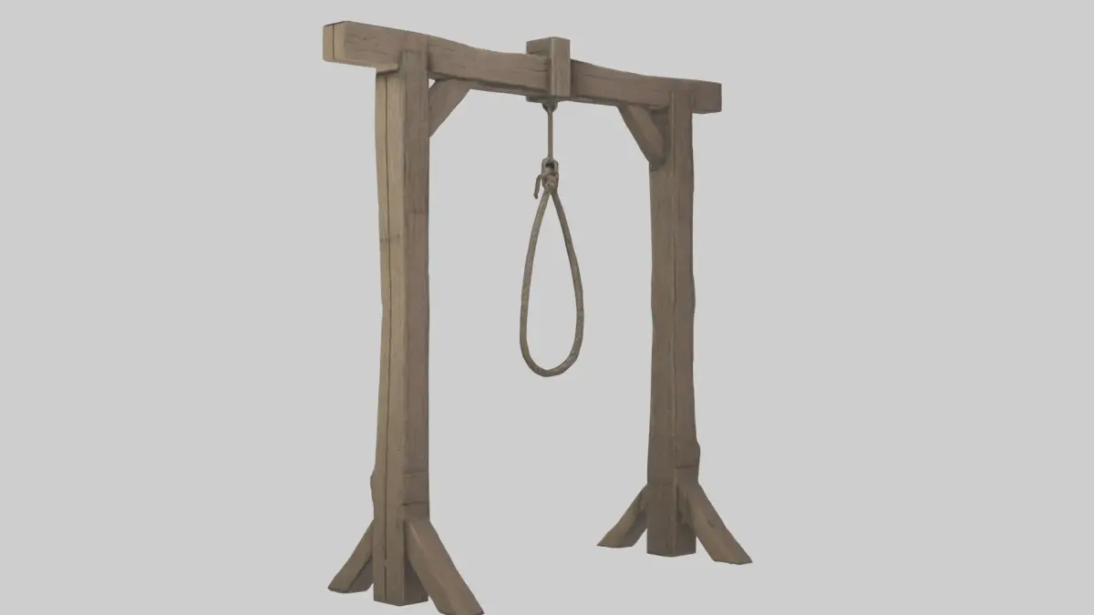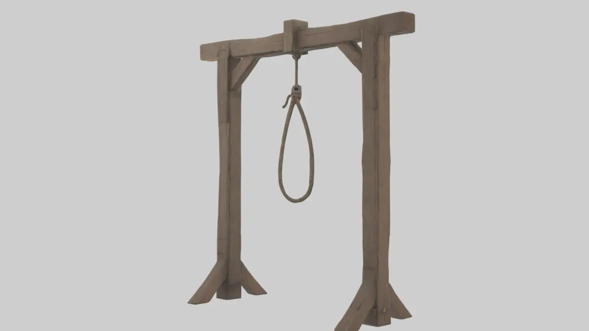 potence, modèle 3D, dispositif d'exécution, historique, médiéval, exécution, châtiment, nœud coulant, cadre en bois, plateforme, poutre transversale, cordes, sombre, justice, période moderne, reconstitution historique