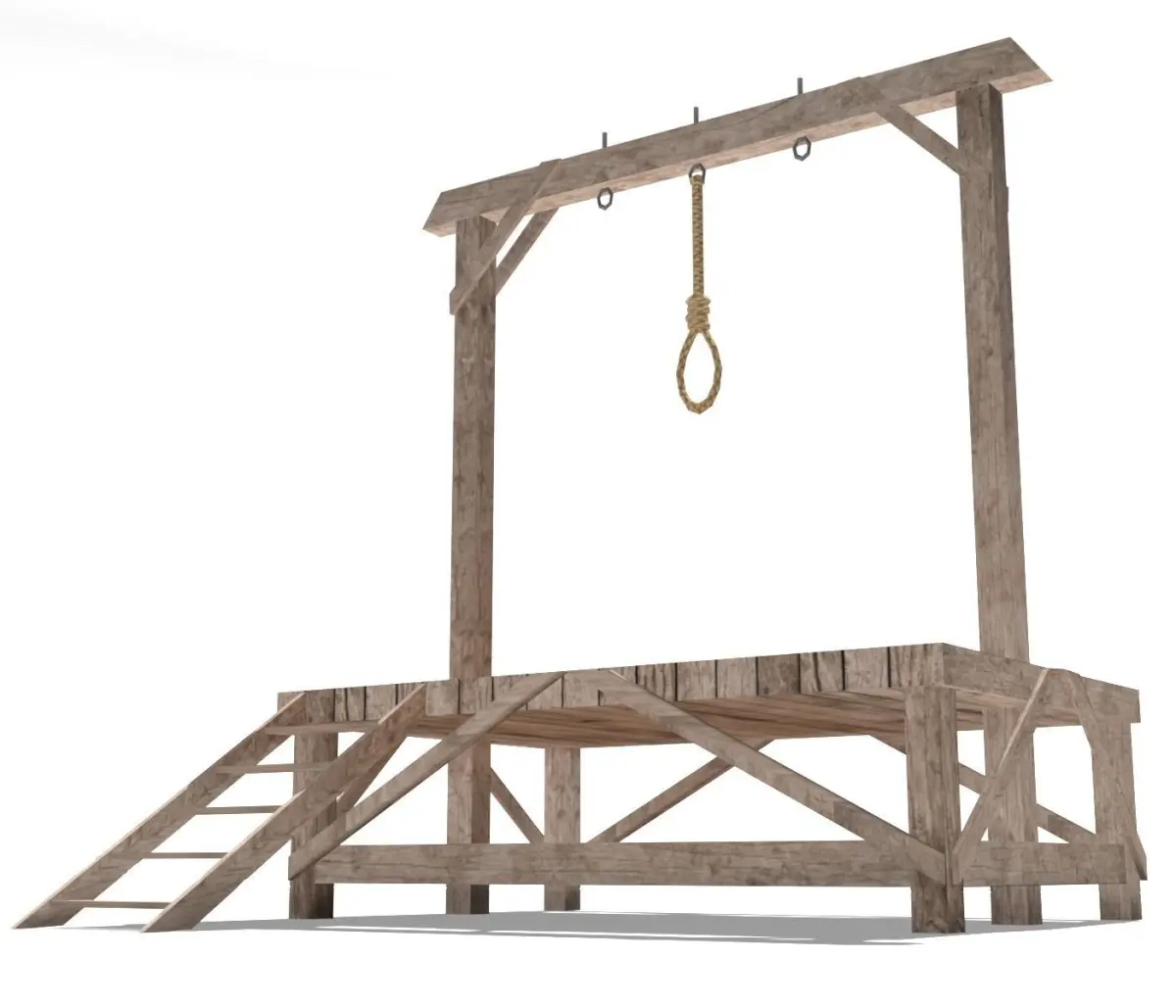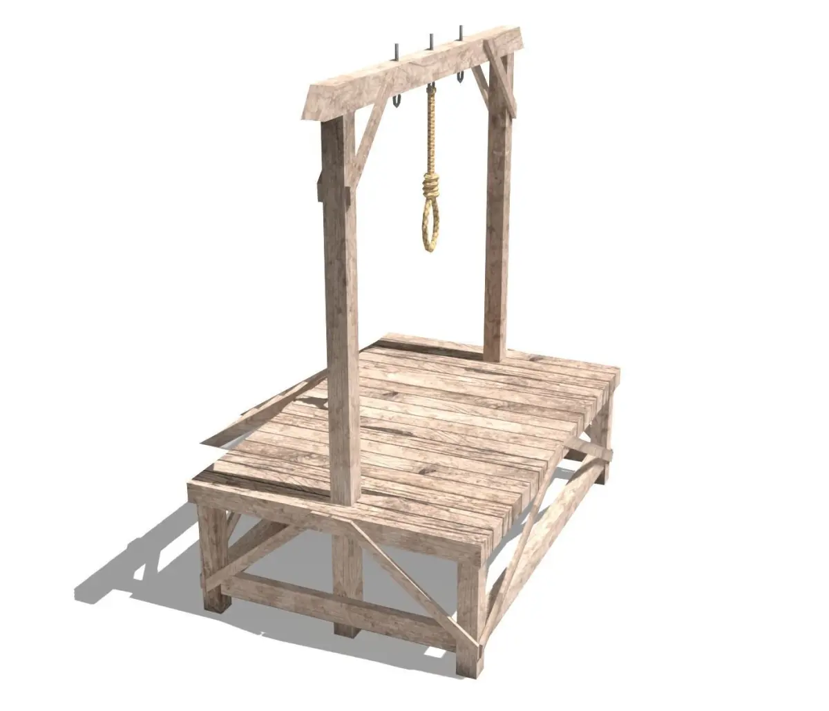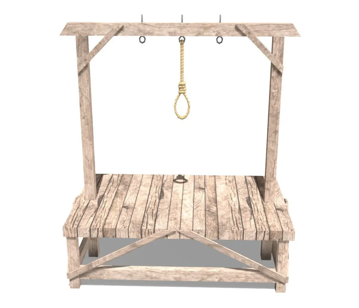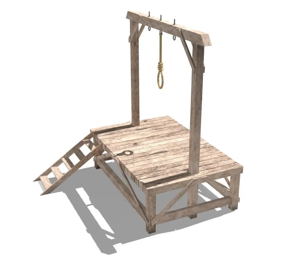 Gallows wooden platform with rope hanging from it Low-poly 3D model