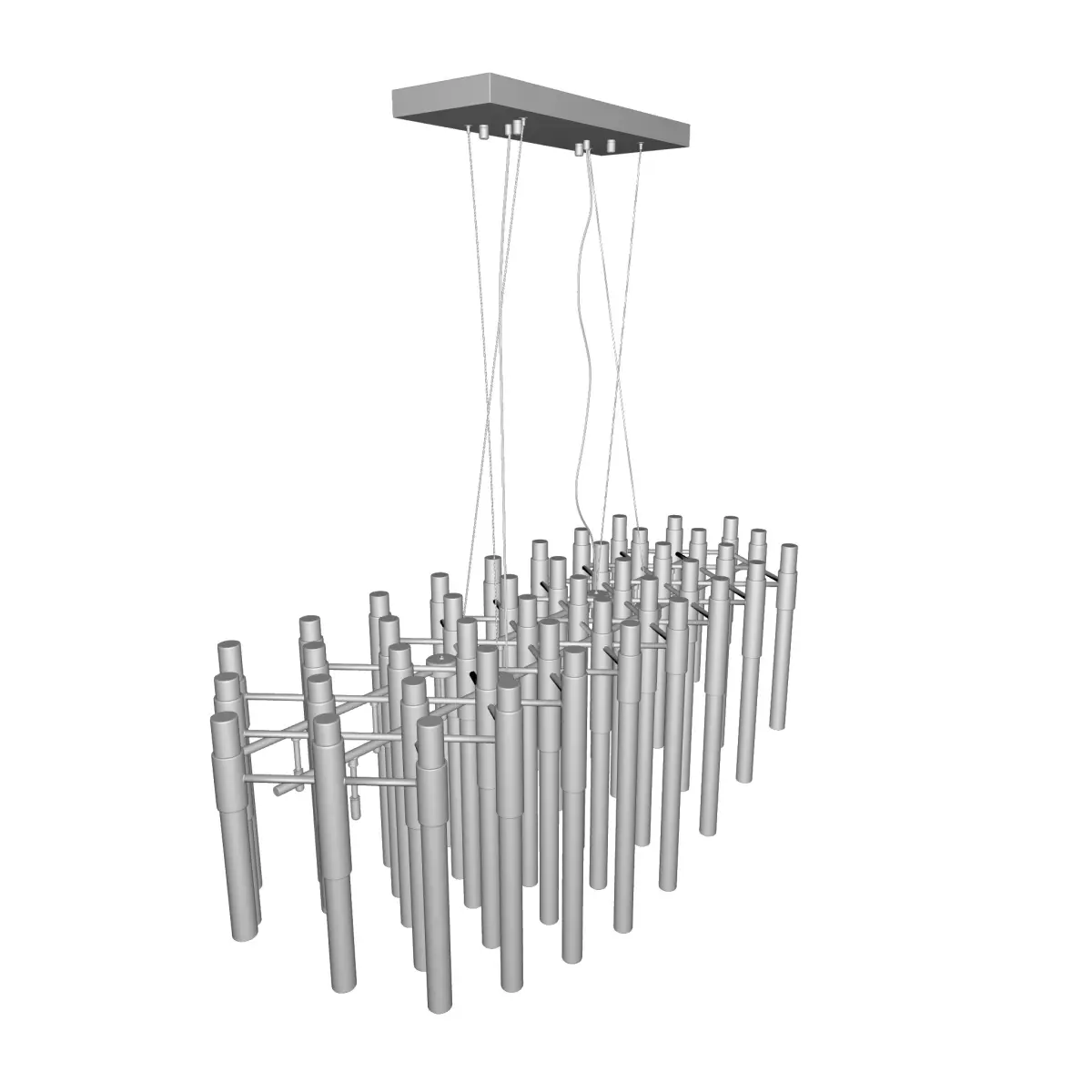 - A metal framed chandelier that comes in either a gold or chrome finish. There are clear crystal rods that hang throughout, which create a beautiful sparkle when illuminated.