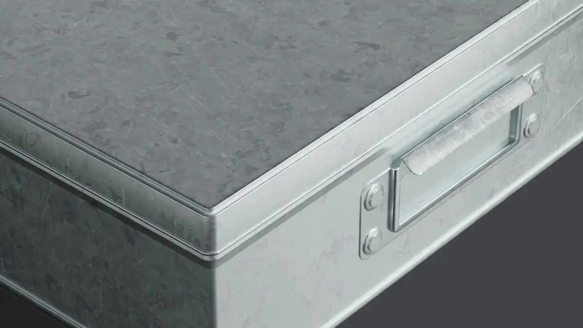 This model is a galvanized metal storage box, designed to be modular and stackable. Its sleek, modern design complements any modern home, office, or workshop setting. It can be also stacked with the following products I have created.