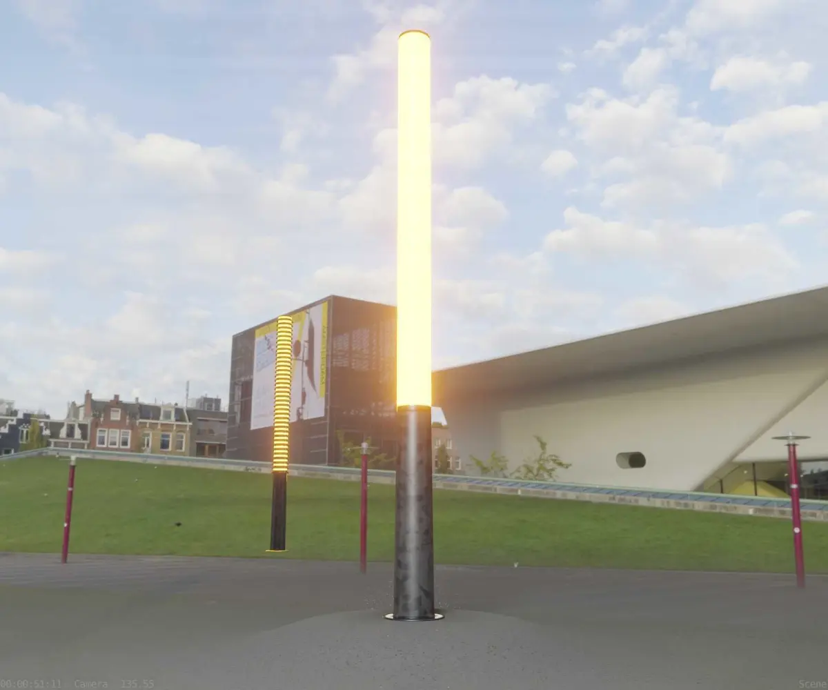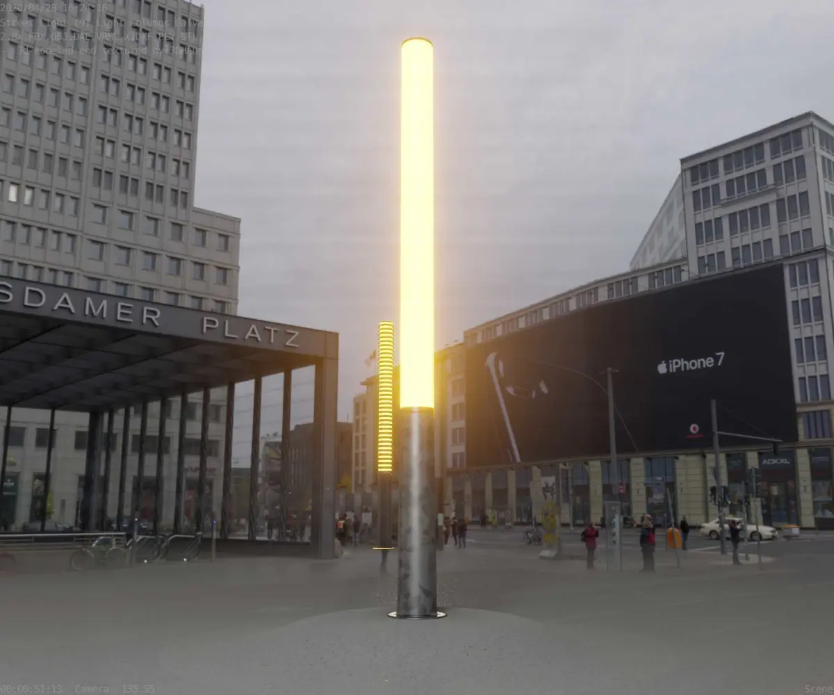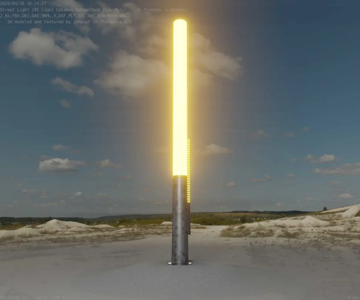 The galvanized textured light column 13 out of the street light set 9.