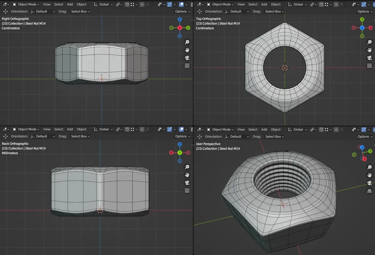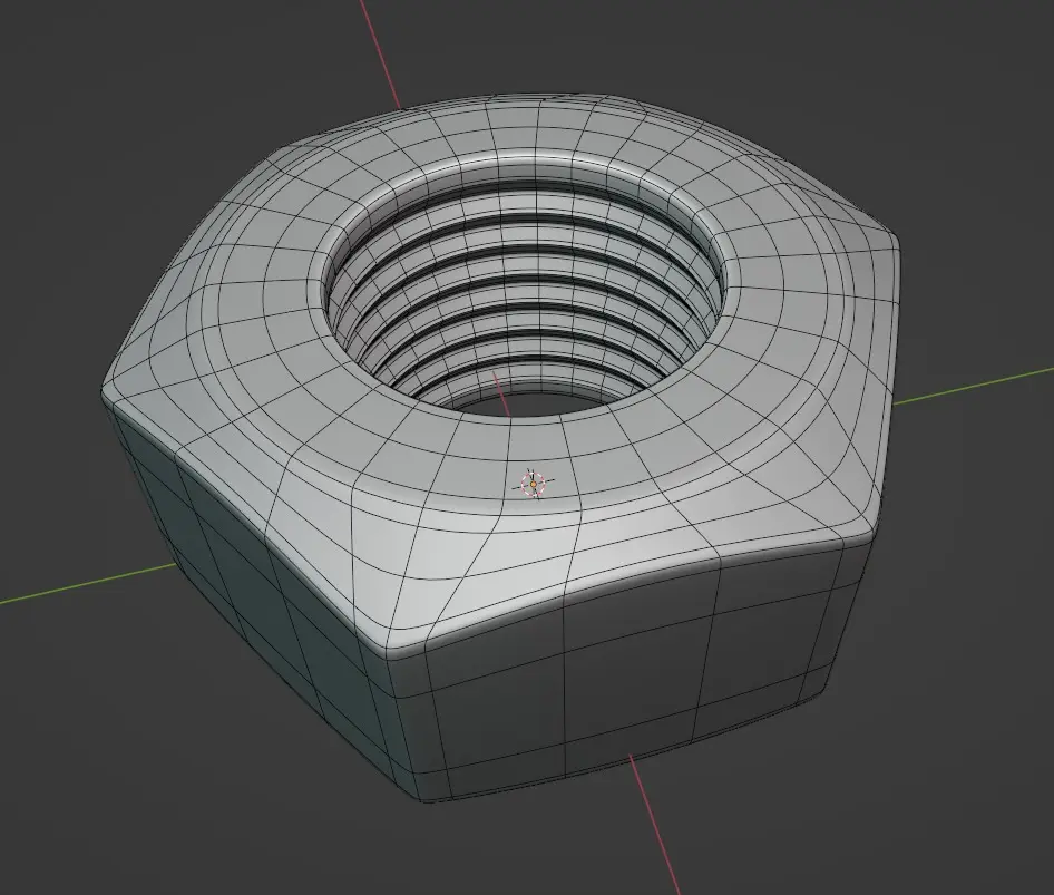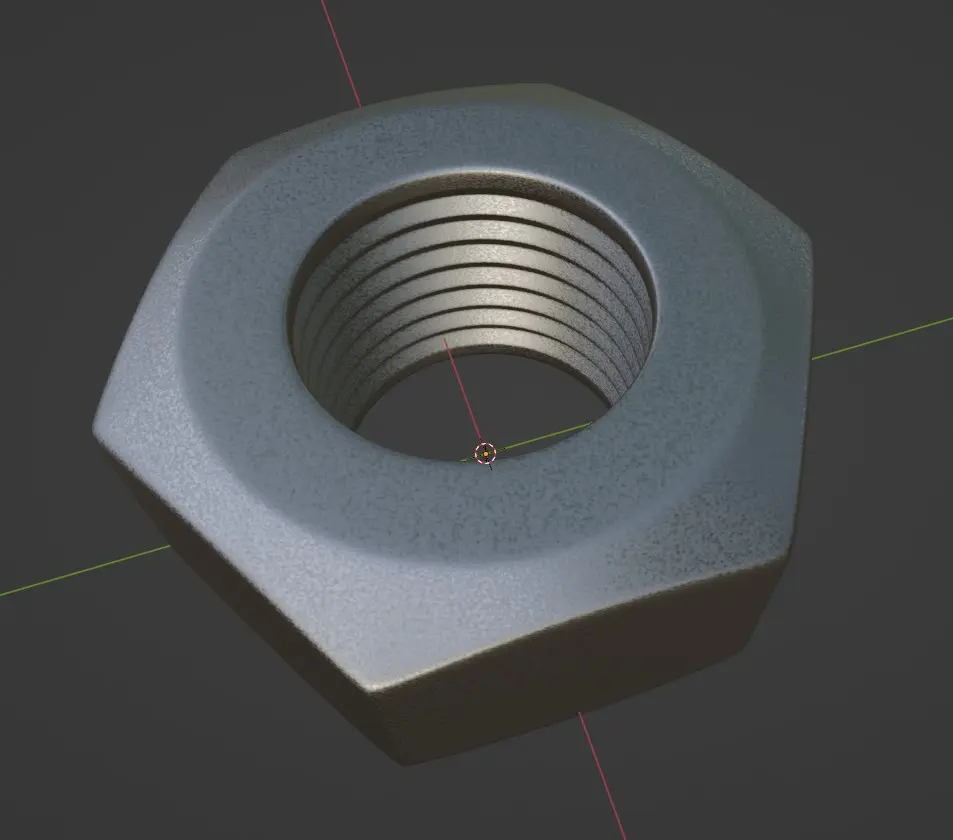 Simple metal (galvanized steel) nut, 2K vertices, procedural steel material, all-quads subdivision ready.