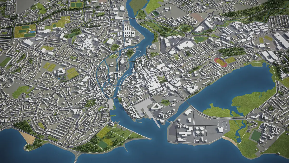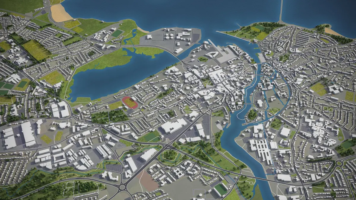 - Full city extents up to 100 x 100 km — or crop to an area of interest for better format compability and scene performance