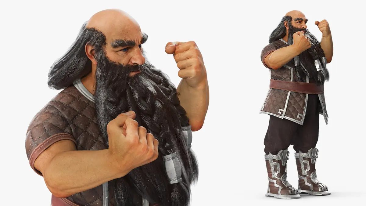 Game Dwarf Character Rigged for Maya is a three-dimensional model of fantasy dwarf character outfitted in intricate armor.