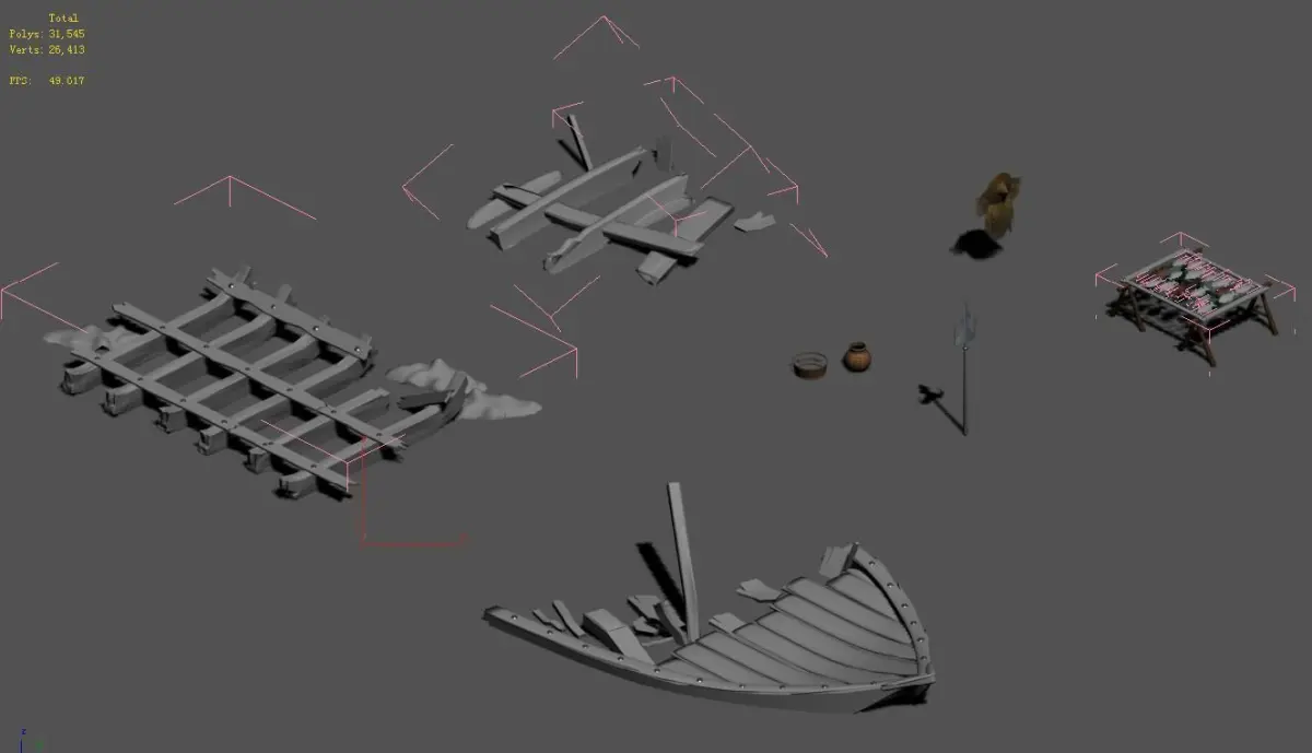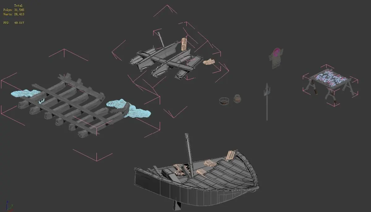 Game Fishing Village - Broken Ship - Fishnet Accessories 3D model