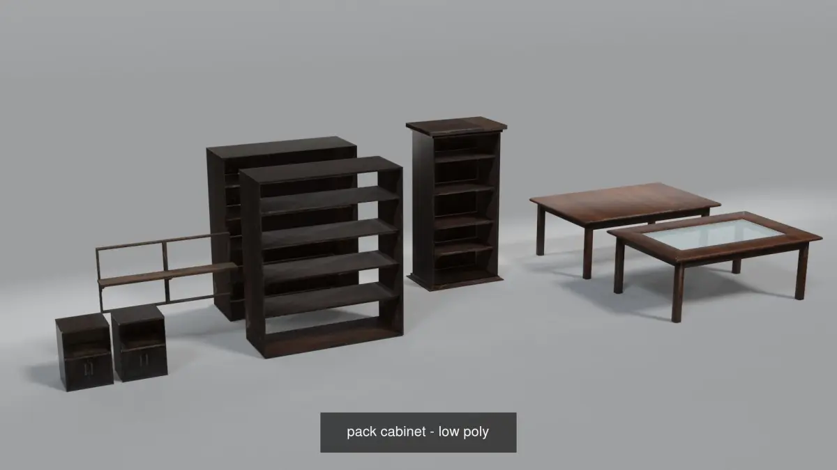 set with some objects to help with the composition of an office, all with a low number of polygonsThis set consists of vases, tables, cabinets, a reading table lamp and papers.