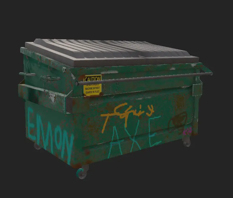 This realistic, game-ready dumpster is perfect for urban environments, post-apocalyptic scenes, or industrial settings in games and animations. The model features:
