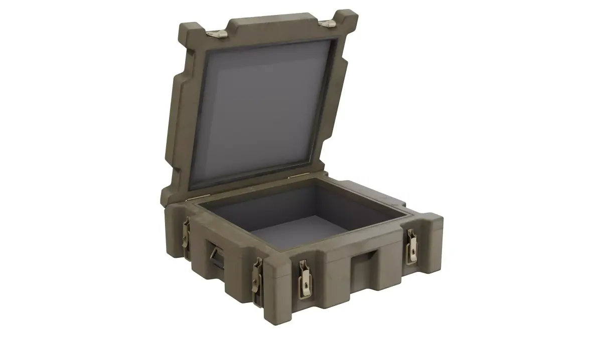 This model is not associated with or endorsed by any brand. The Military Storage Case depicted is a fictional brand and does not represent any real product.