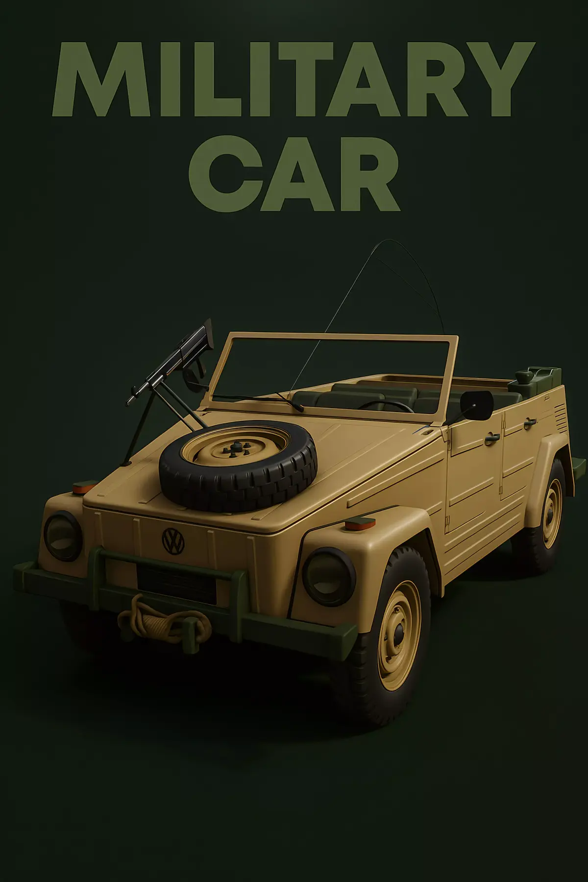 *Bring* realism and power to your next war or survival game with this Game-Ready Military Jeep — inspired by the legendary WW2 Volkswagen Type 181.This model features high-quality PBR textures, a mounted MG, and a fully detailed interior designed for desert and battlefield environments.