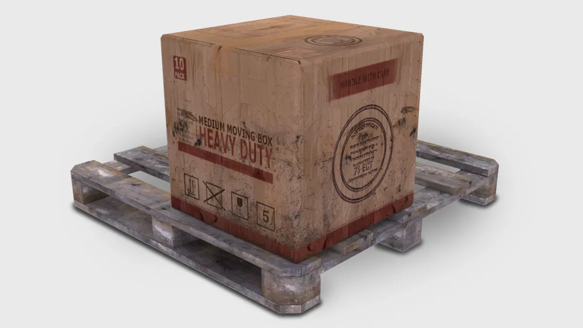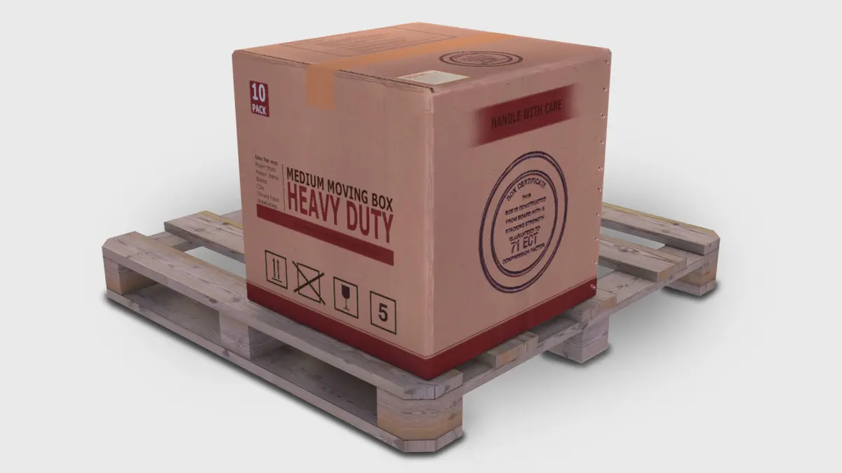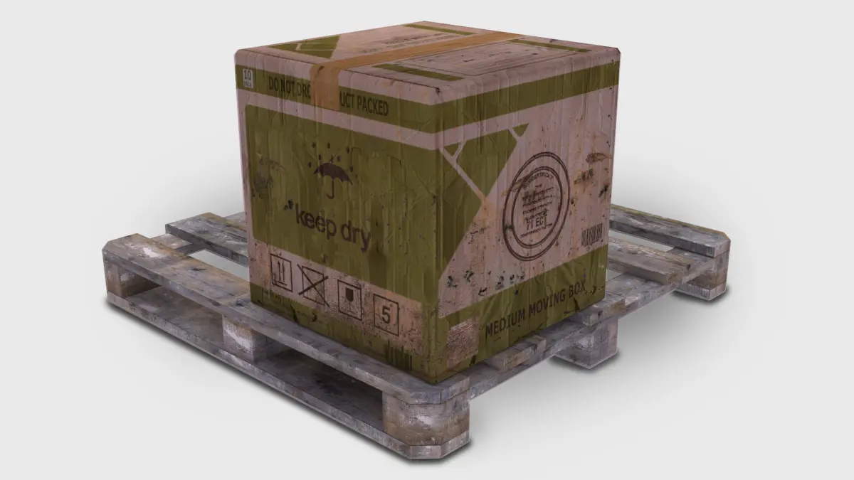 Polygone & VerticesCardboard Box: 26 Poly, 24 Vertices Pallet: 128 Poly, 152 Vertices