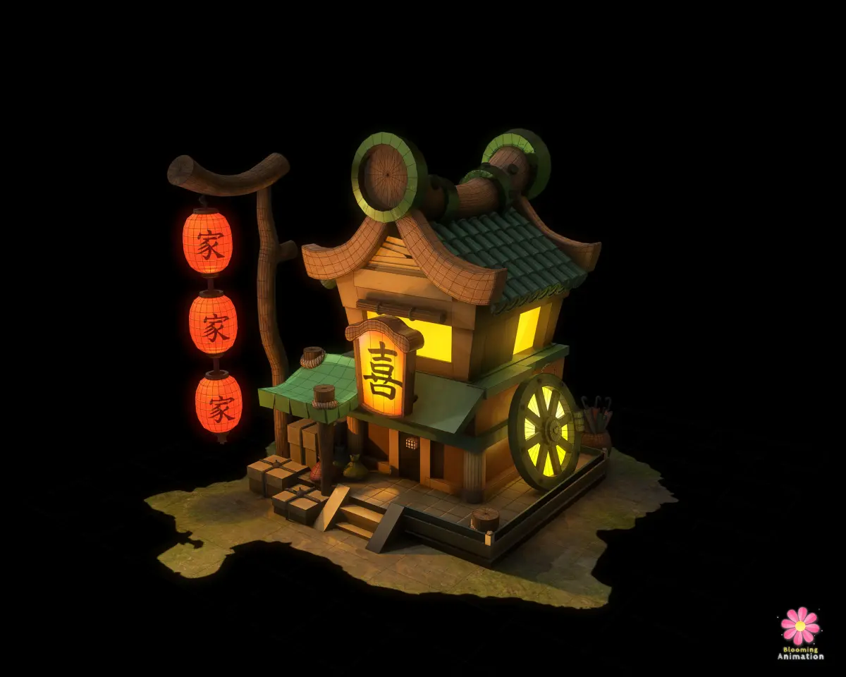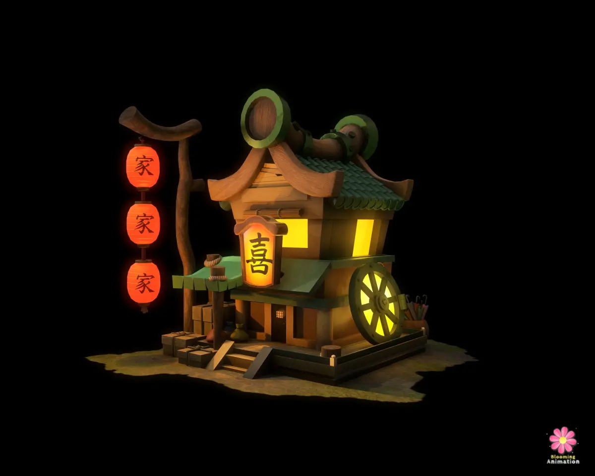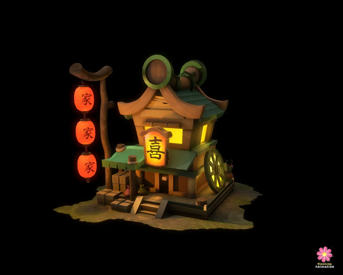 Low Poly Game Ready Chinese Food Court with PBR textures