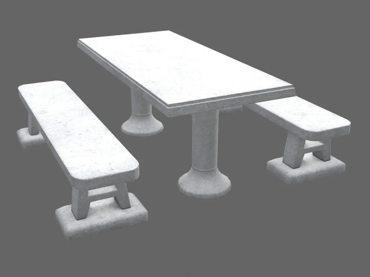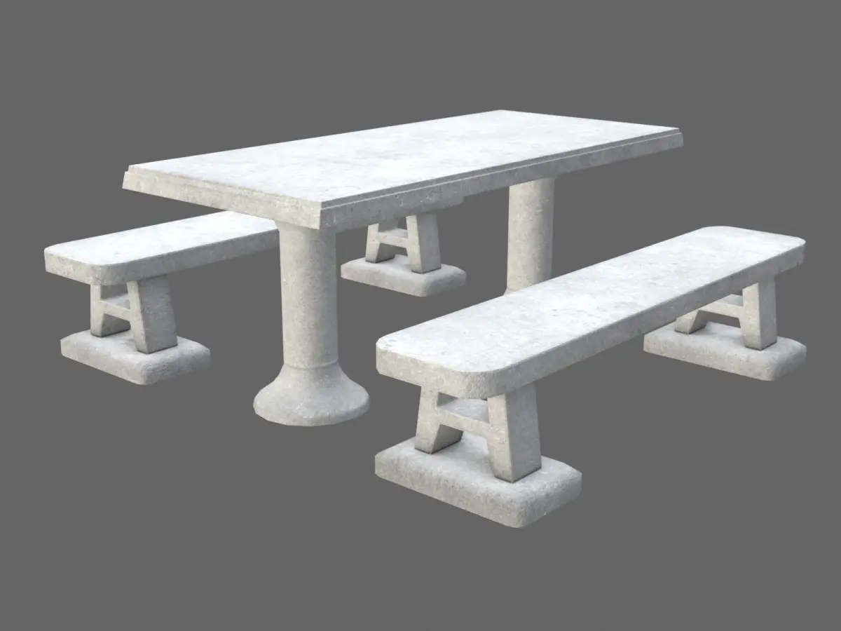 Concrete Picnic Table 3D Asset - game-ready - inspired by real life object seen in Croatia. Table and benches are separate objects. Contains LODs aswell as custom collider.