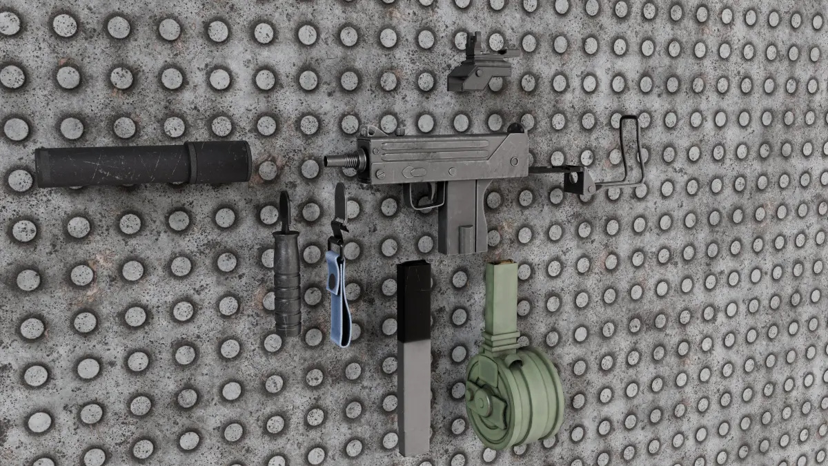 The Mac-11 Ingram, one of the most iconic weapons in history, with 7 additional attachments ready to be imported into game engines.