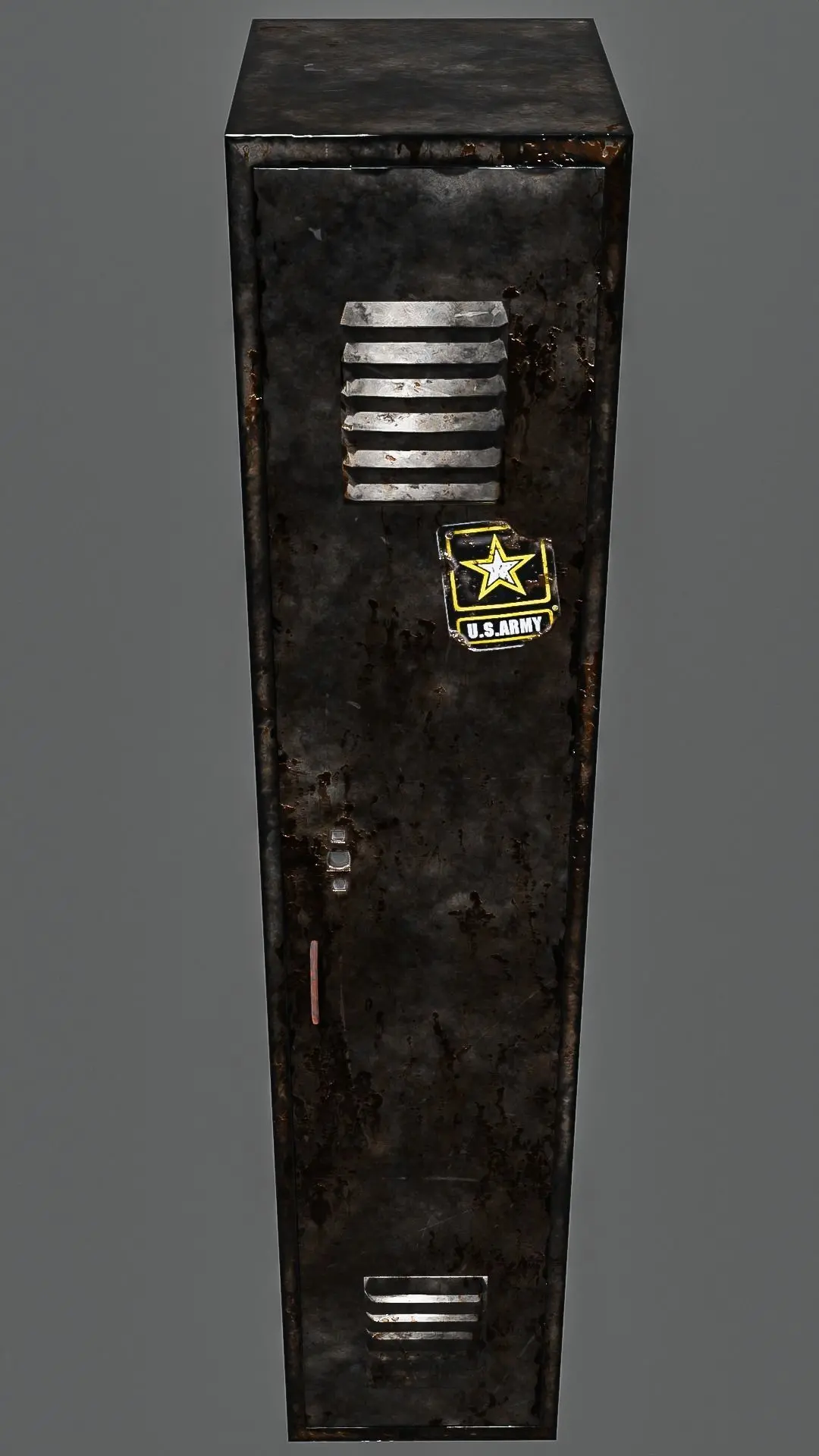 Model has 286 Polygons - 296 Vertices - 580 Triangles - Realistic Rusty Metal Locker model that includes 3 different texture sets. Each texture set with 4096x4096 resolution. length - 38cmwidth - 45cmheight - 185cm