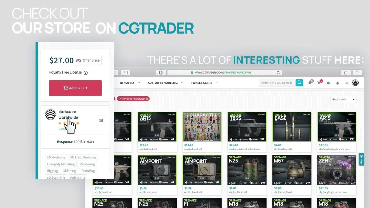 Suitable for games, movies, renders, vr and more. Can be used as props, character equipment, weapon. Model is compatible with Unity, UnrealEngine. Model is made in Blender and has source file with low-poly model. Also in archive there are *.fbx and *.obj.