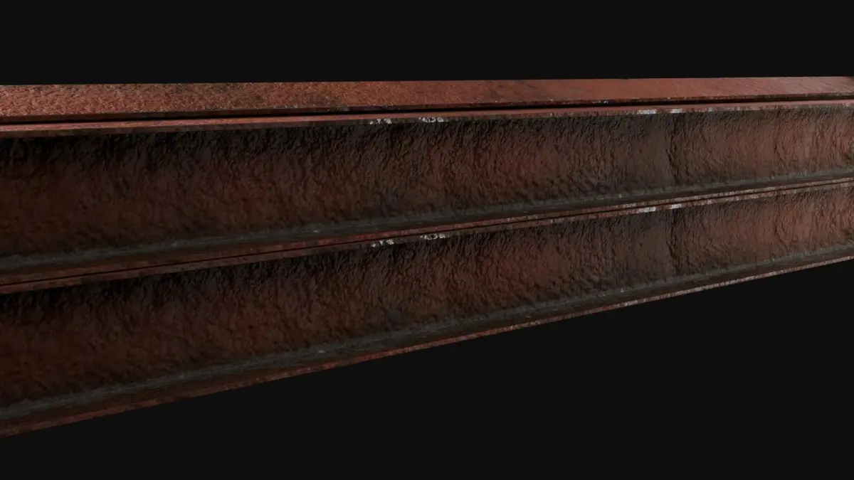- The model accurately portrays aged metal I beams with rust and corrosion.