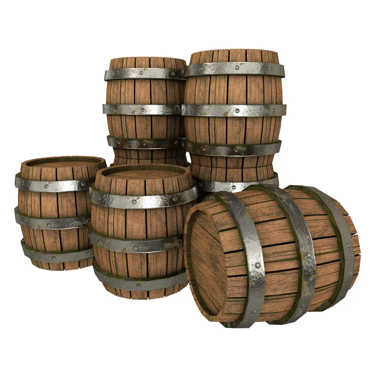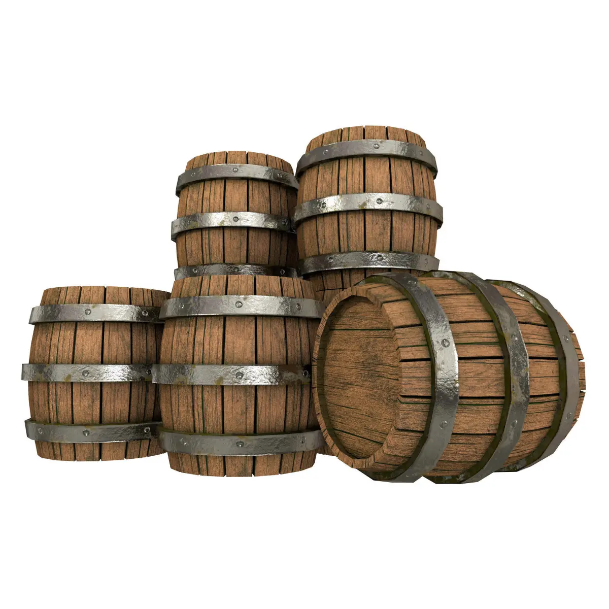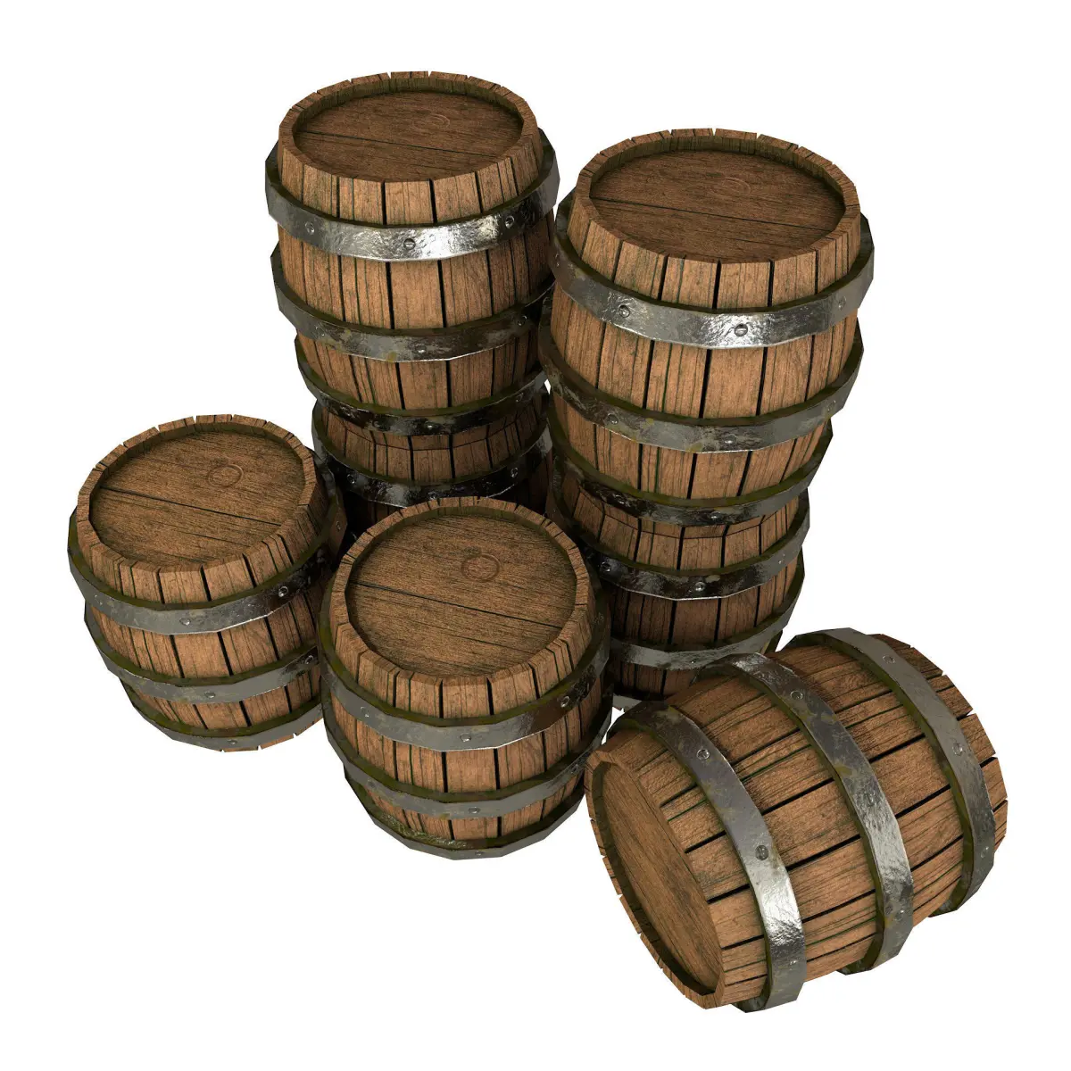 Low Poly 3D model of an Old Wooden Barrels