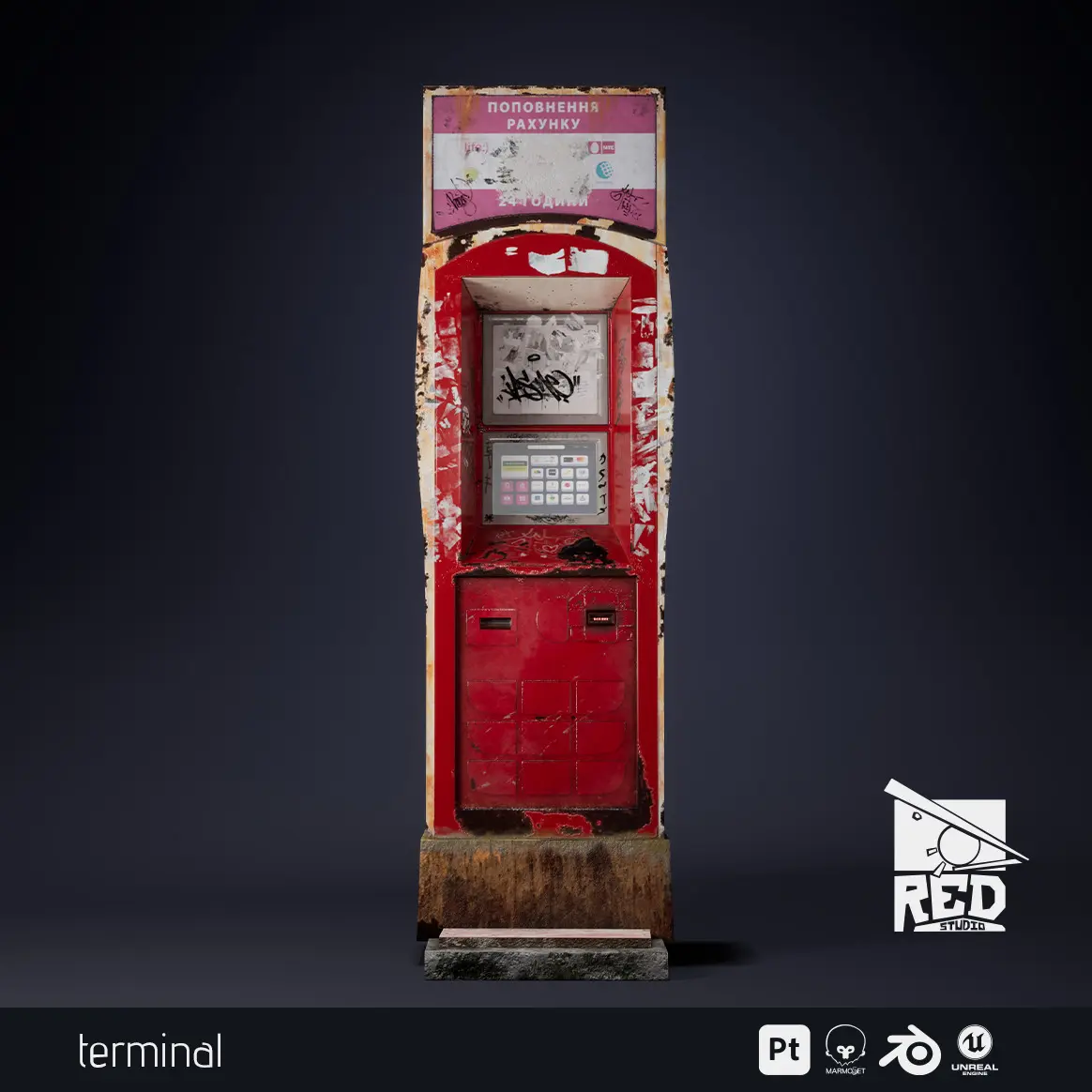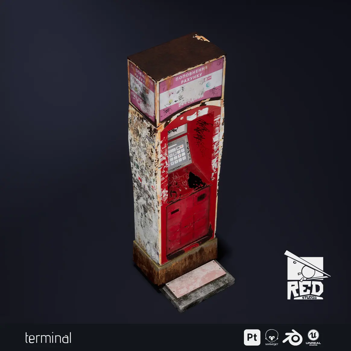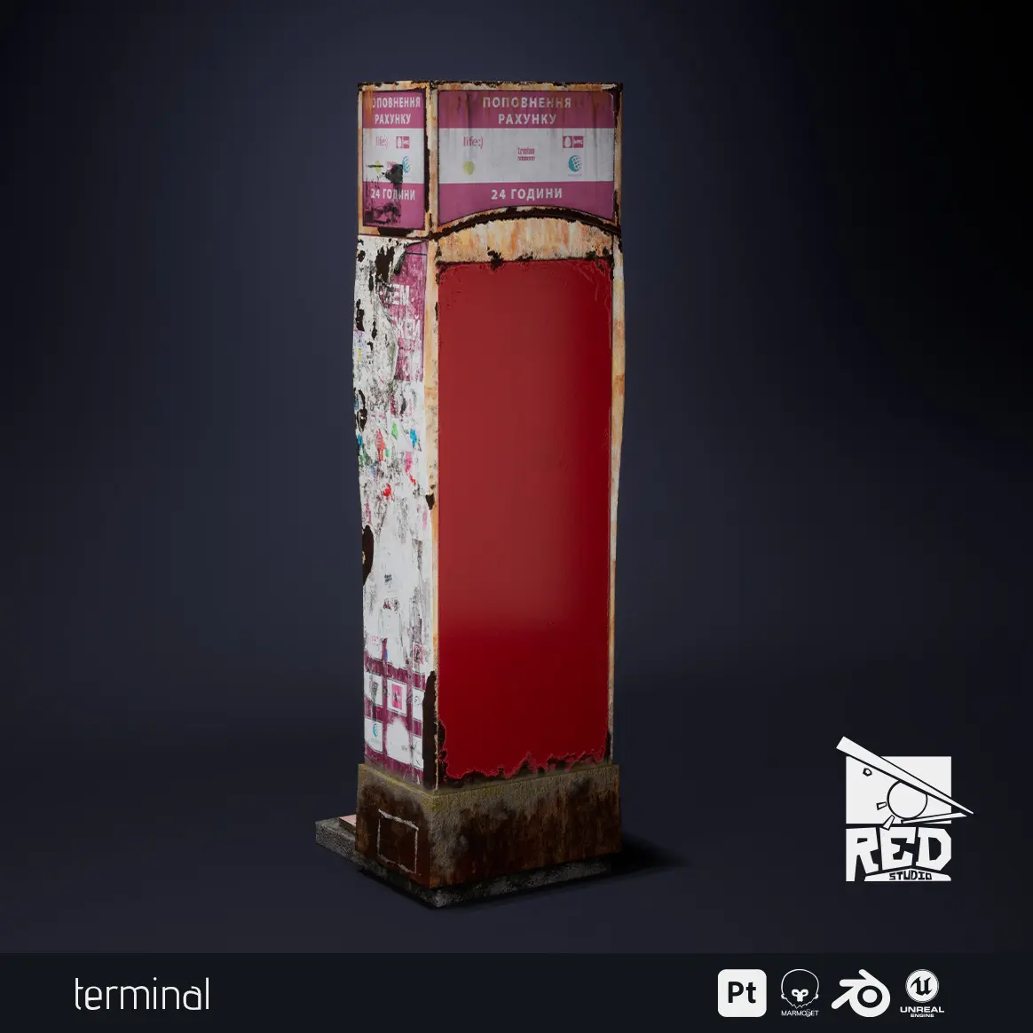 Realistic 3D model of a service terminal optimized for Unity and Unreal Engine. Comes with PBR textures and several formats. What is included:Low-Poly 3D Model (340 tris)PBR Textures (2K, 4K) - BaseColor, Roughness, Normal, AO, MetallicFormats: FBX, OBJ, Blend, STL,Ready for: Unity, Unreal Engine