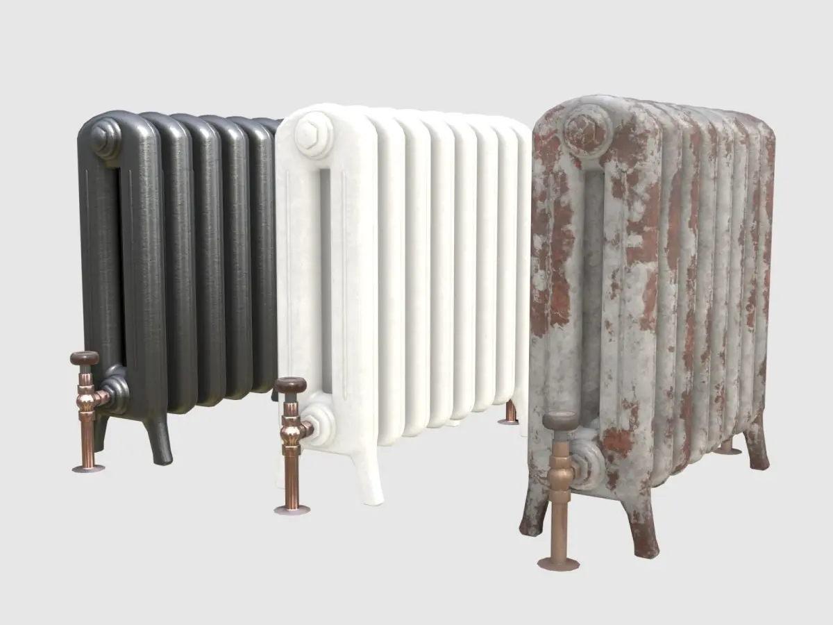 Rusty iron radiator 3D asset - game-ready - highpoly on lowpoly - modeled with Blender 2.80, textured carefully with Substance Painer.Rendered with Eevee (also with different HDRIs). 3 parented mesh objects, single material. UV mapped for most optimal use of UV space. Metric units.