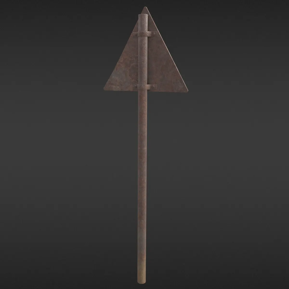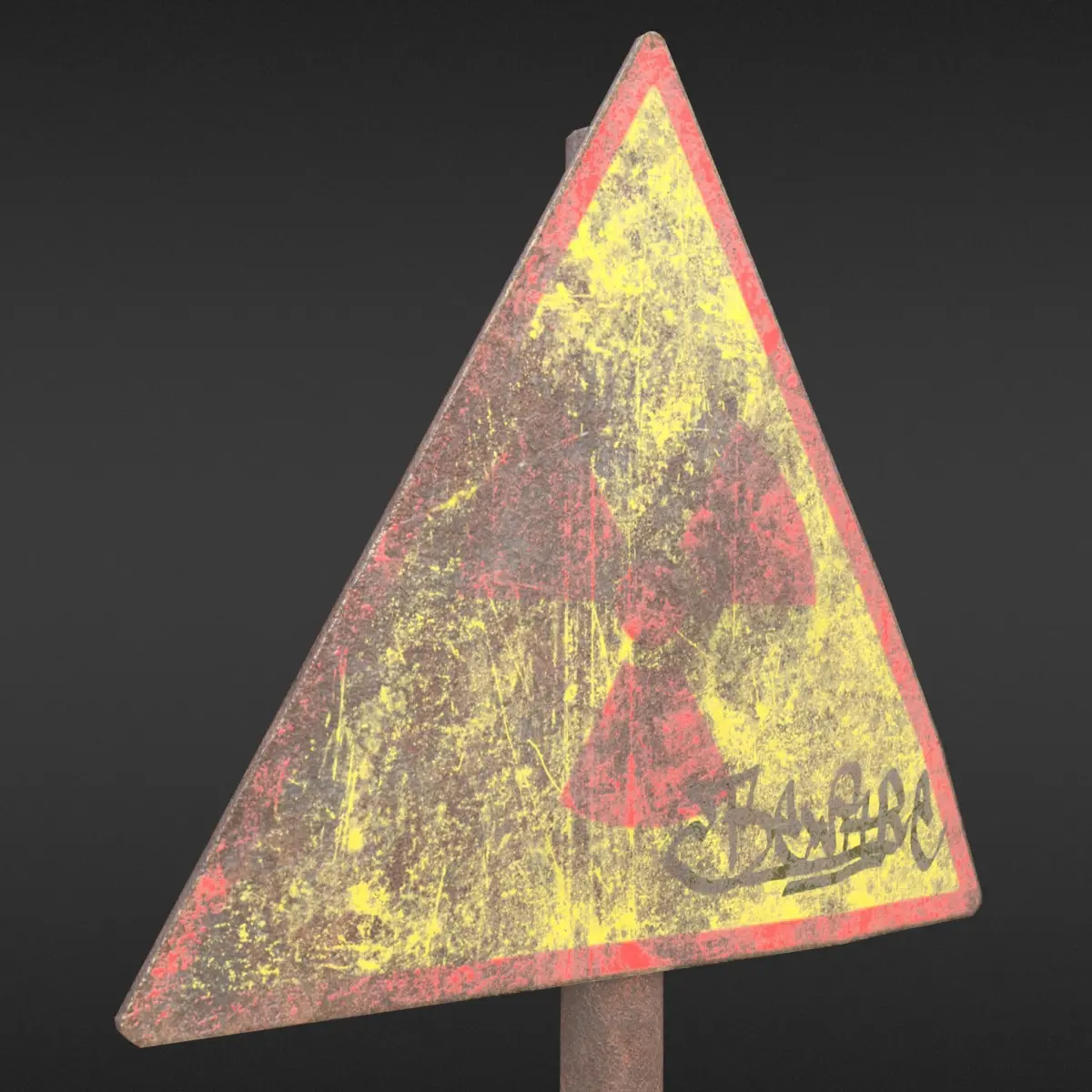 Rusty radioactivity sign - game-ready - highpoly on lowpoly - modeled with Blender 2.80, textured carefully with Substance Painer.Rendered with Eevee (also with different HDRIs). 2 parented mesh objects, single material. UV mapped for most optimal use of UV space. Metric units.