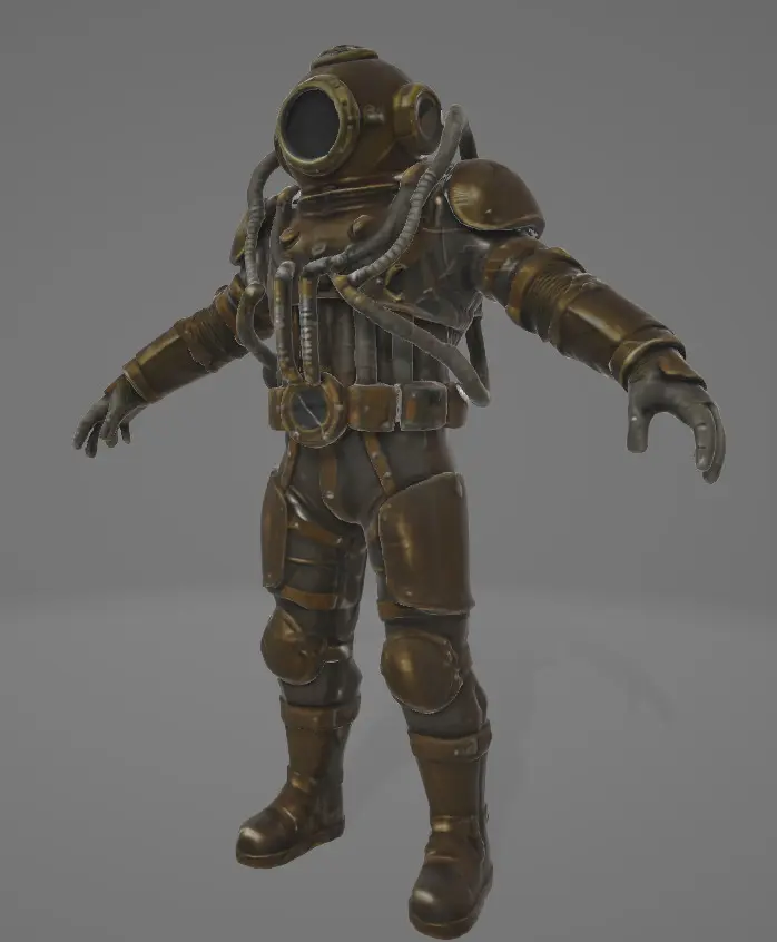 A female deepsea diver character ready for video game.