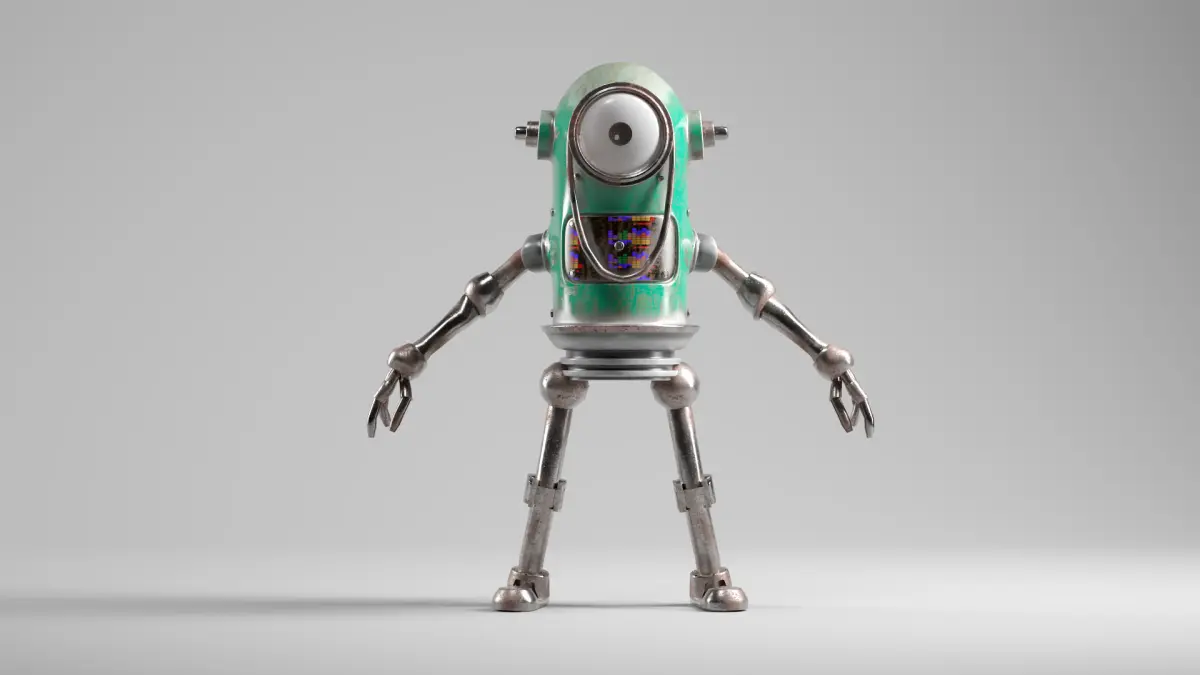 Mini Rusted Surveillance Bot – Game Ready Robot CharacterDescription:This is a game-ready, stylized robot character with a retro-futuristic design and weathered metal textures. Ideal for sci-fi projects, animation, games, and cinematics. The model is fully rigged and compatible with Mixamo, Cinema 4D, Redshift, and Unreal Engine.The asset includes two material variations: turquoise and yellow, with PBR 4K textures applied. All parts are UV-unwrapped and optimized for real-time rendering.