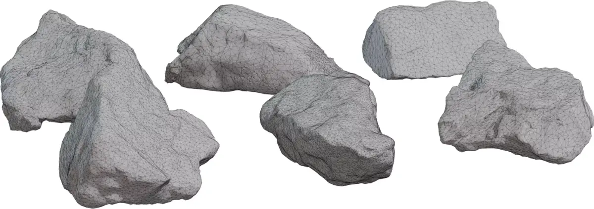 This game‑ready rock pack contains a collection of realistic natural stones created from high‑quality scans for use in games, cinematics and archviz environments. The assets feature a range of shapes and sizes, from chunky boulders to flatter stones, with subtle color variation, cracks and mossy details that blend seamlessly into outdoor scenes. Clean, decimated geometry keeps the polycount efficient while preserving important silhouette and surface information for convincing close‑up shots.