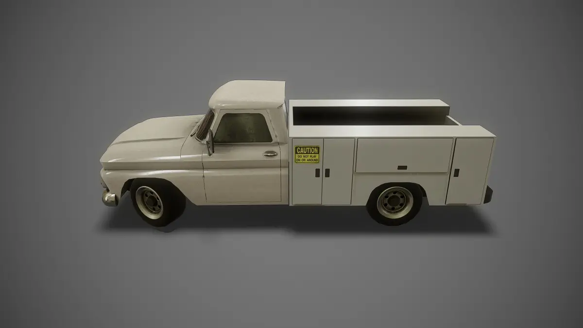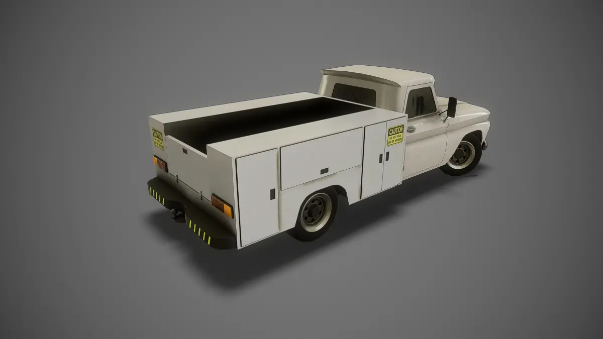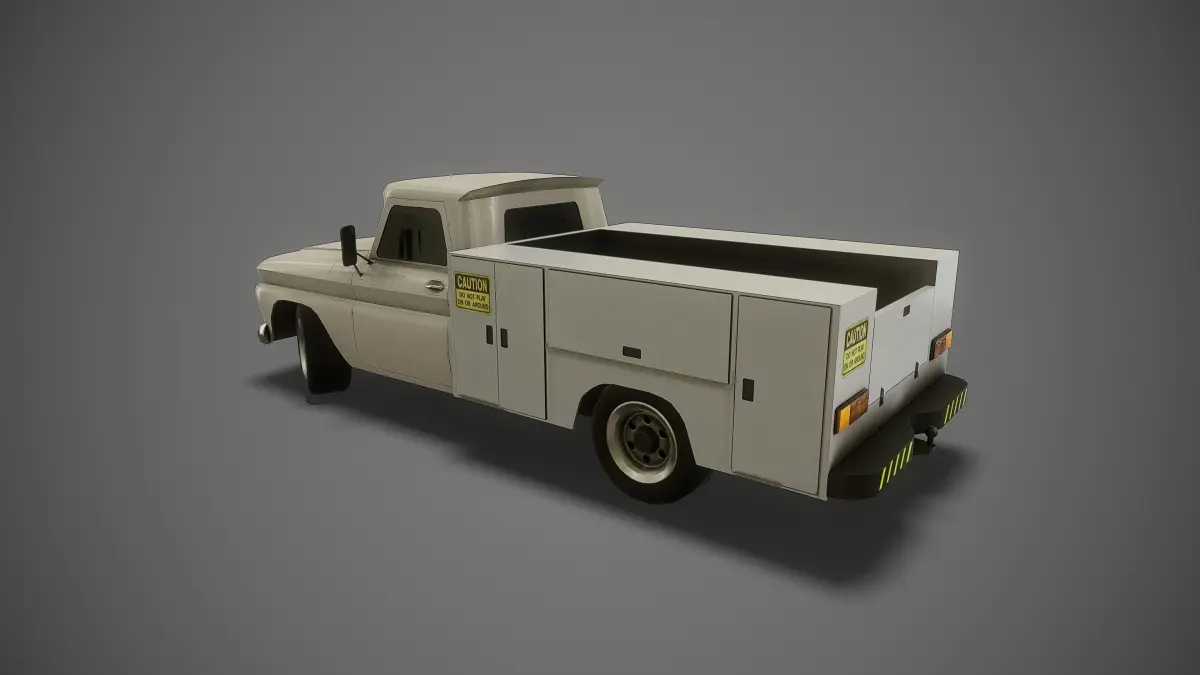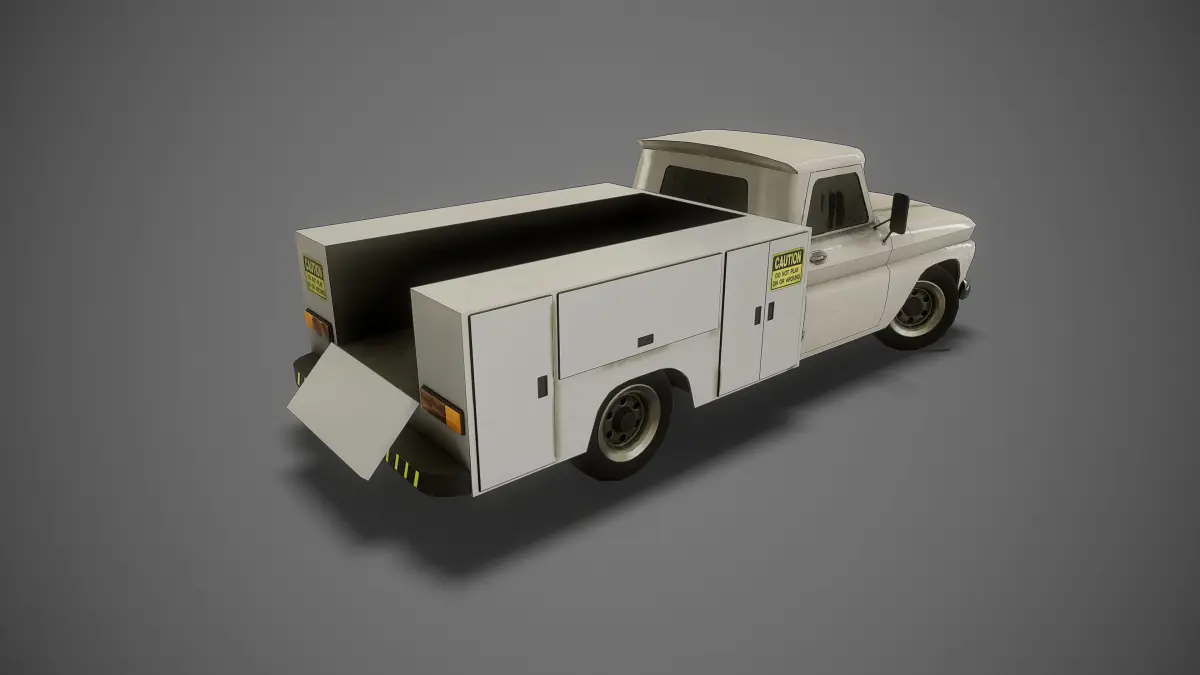 Mobilefriendly 3D model of service truck. PBR textures. Lowpoly mesh. Ready to use in game engines.